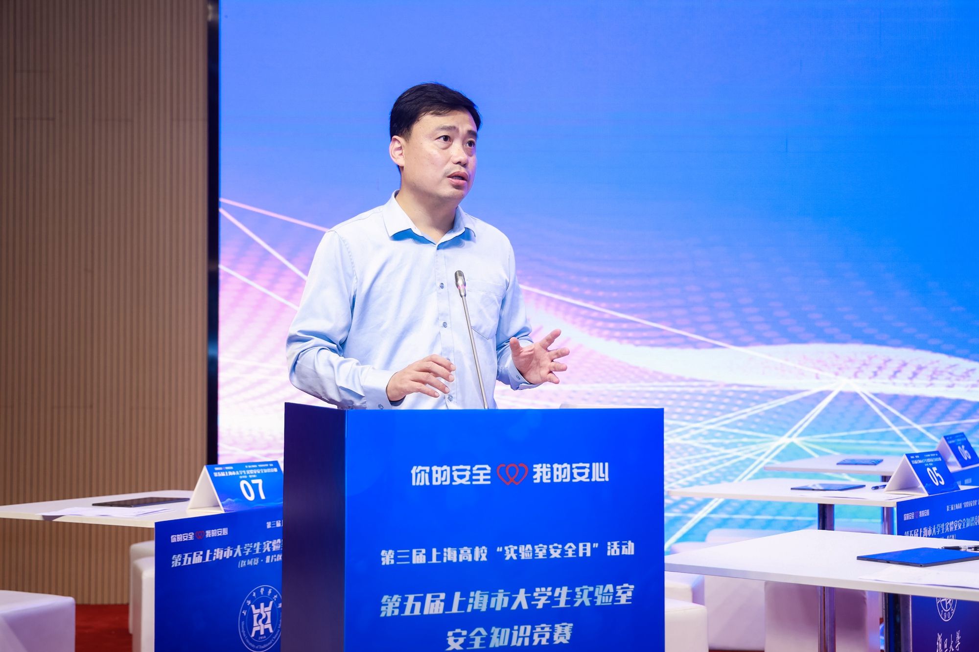 beat365手机官方网站党委副书记、副校长胡大伟,上海市教育委员会学校后勤保卫处处长贺小虎,副处级调研员陈宇红,以及来自多所高校的实验室安全相关部门负责人等出席了此次竞赛活动。胡大伟在致辞中热烈欢迎了各位嘉宾、评委和参赛师生,并强调了实验室安全的重要性。他提到,beat365手机官方网站始终将实验室安全工作放在首位,持续投入,不断改善实验室安全条件,完善相关制度体系,形成了实验室安全齐抓共管的良好氛围。胡大伟也对未来实验室安全工作提出了期望,并期待赛事活动越办越好,影响力不断扩大,为党和国家培养更多全面发展的社会主义建设者和接班人贡献力量。