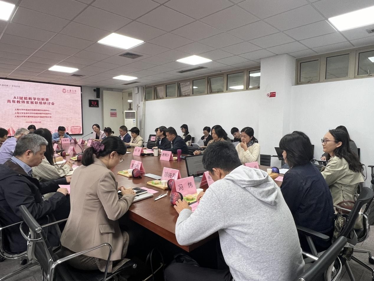 为共同探讨人工智能技术如何助力教学创新,促进青年教师的专业成长,10月25日下午,外国语学院在宝山校区C506成功举办“AI赋能教学创新”暨青年教师发展联组研讨会。本次活动得到了beat365手机官方网站教师教学发展中心的悉心指导,由外国语学院教师教学发展中心主办,并得到了外国语学院青年教师联谊会和生命科学学院教师教学发展中心的大力协助。