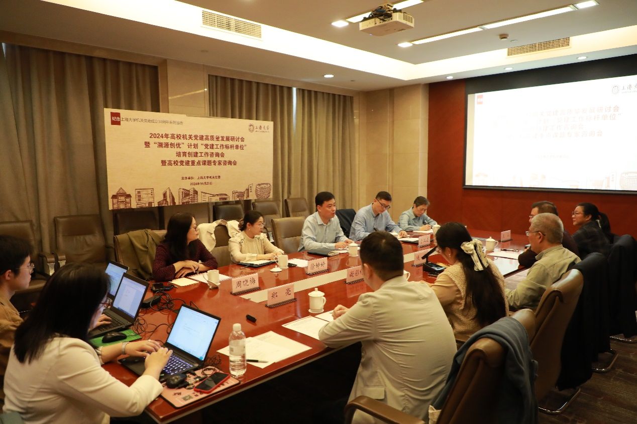 近日,机关党委发起召开2024年高校机关党建高质量发展研讨会,同时也是机关党委“溯源创优”计划“党建工作标杆单位”培育创建工作咨询会和高校党建重点课题专家咨询会。校党委副书记、副校长胡大伟到会指导,复旦大学、上海交通大学、同济大学、湖南大学、华东师范大学、华东理工大学等多所高校机关党委书记出席会议并开展研讨,校党委组织员尚彩伶应邀参会指导。会议由机关党委书记钱峰主持。