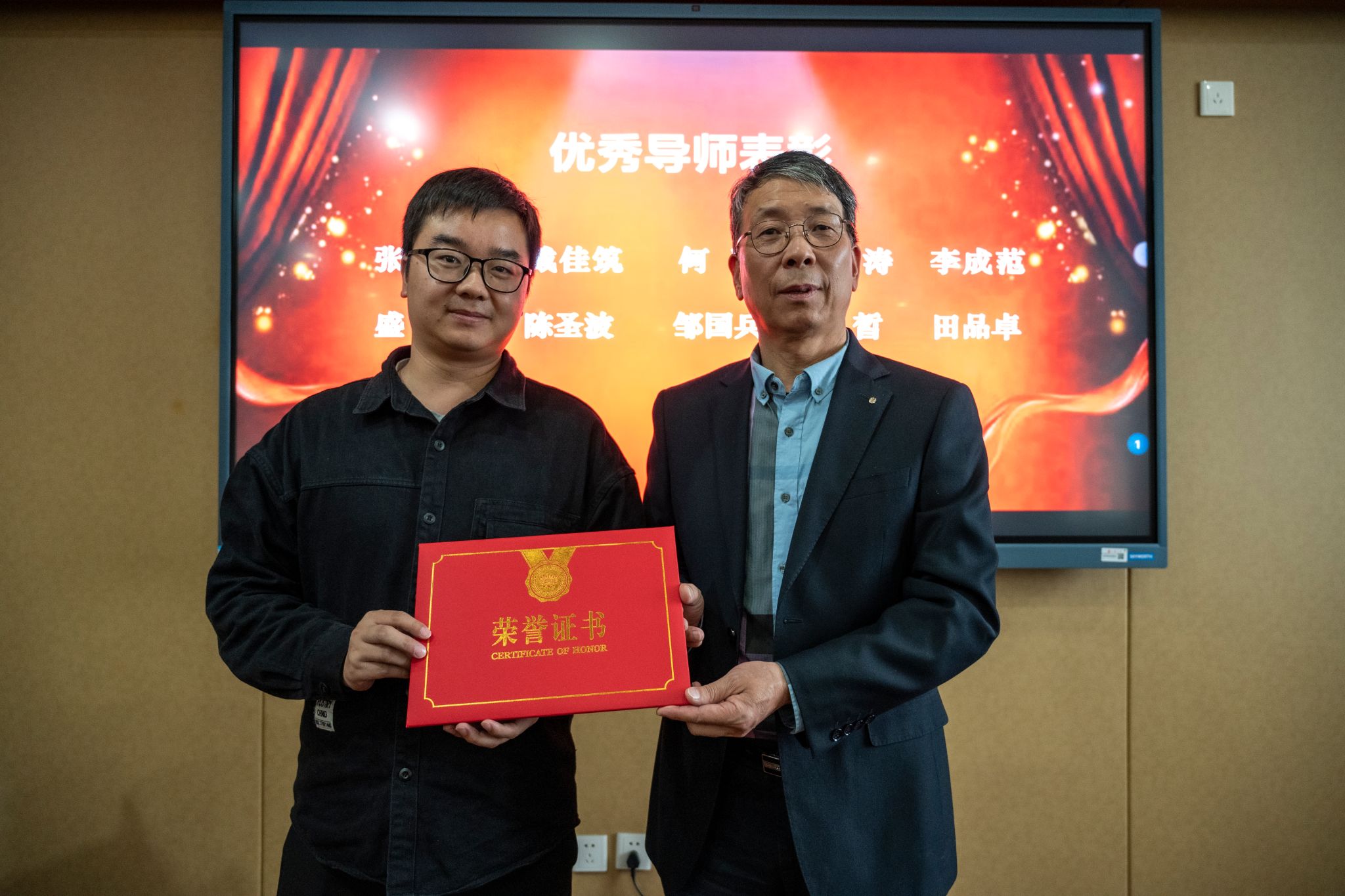 综合导师育人成果及前期学生评价调研问卷,学院评选出2023-2024学年10名优秀本科生全程导师:张景峤、戴佳筑、何冰、李江涛、李成范、盛斌、陈圣波、邹国兵、王皙、田品卓。本科生书院管理中心(“一站式”学生社区中心)副主任佟丽宁,学院党委书记朱宏涛,特邀党建组织员吴仲钢为导师们颁发荣誉证书。