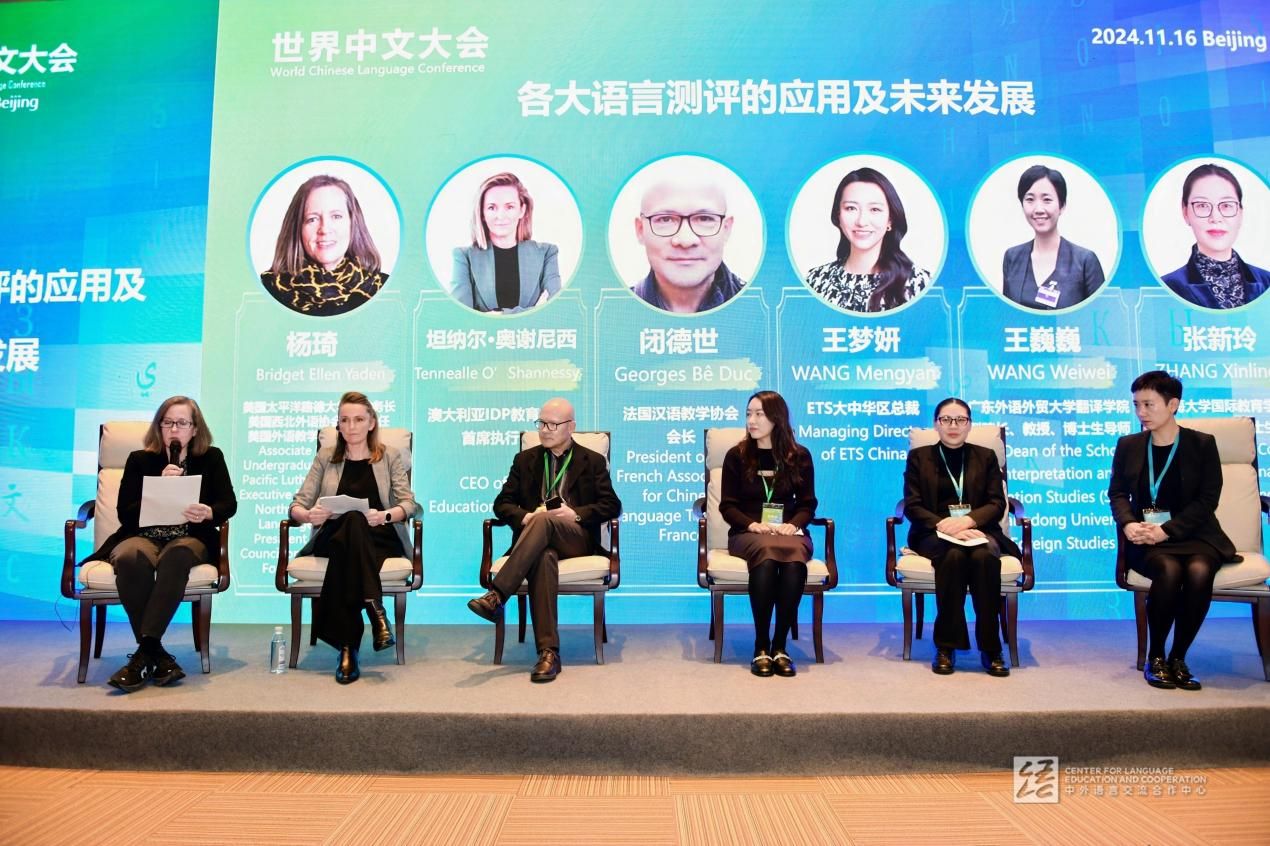 11月16日下午,张新玲教授还受邀与来自美国、澳大利亚、法国等国际重要语种的考试专家就“各大语言测评的应用及未来发展”进行了专家研讨和发言。其团队的最新译作《国际中文教学通用课程大纲》(Curriculum for International Chinese Language Education)同步由上海外语教育出版社出版,并在世界中文大会向全球发布。