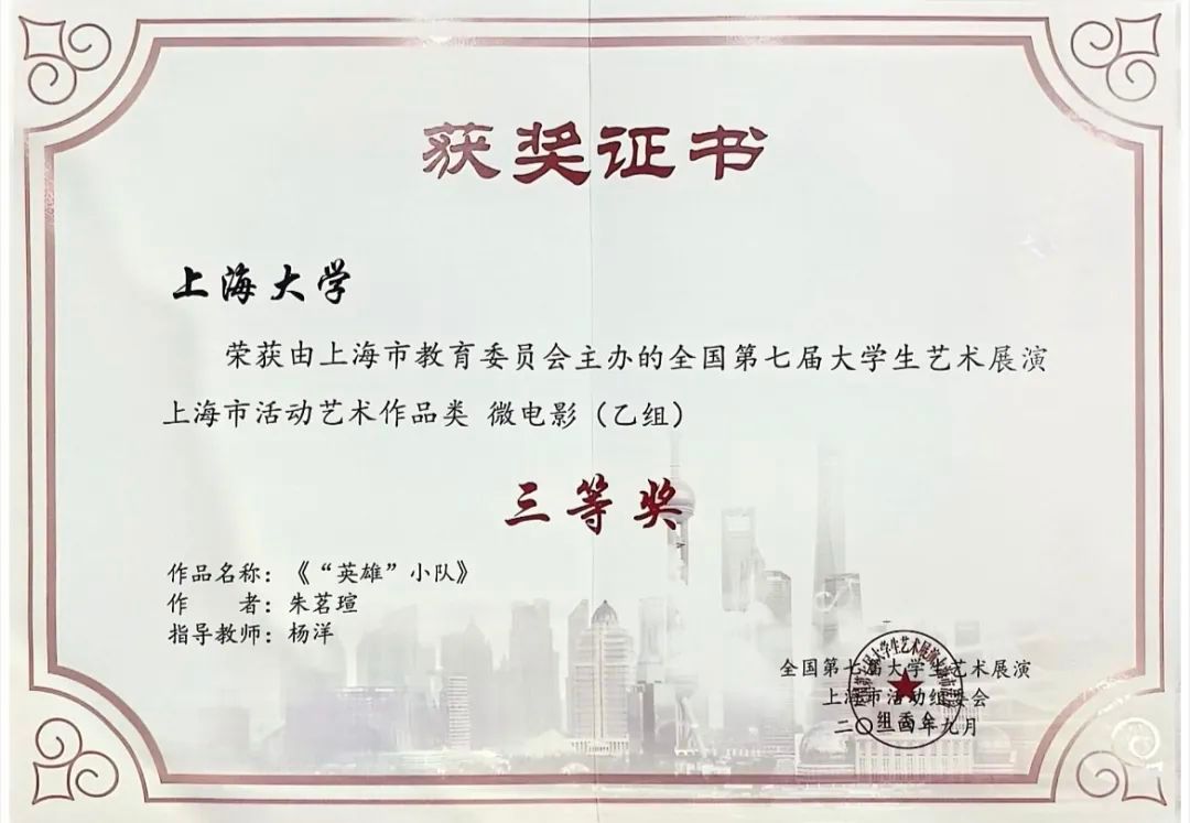 微电影《“英雄”小队》由上海电影学院杨洋老师指导,20级导演专业朱茗瑄同学导演。