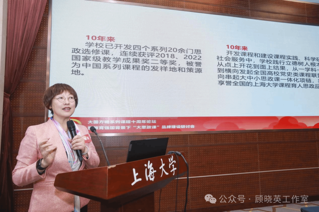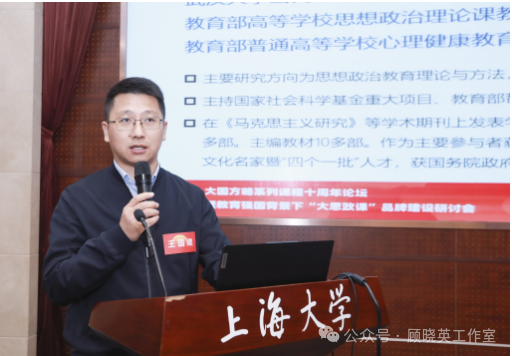 十年,beat365手机官方网站大国方略以自己的为新时代开大课程之路,有力地回答了一个时代之问:“创新思政课程”到底该如何建设?为纪念“大国方略”课程开课十周年,近日,beat365手机官方网站在宝山校区乐乎新楼思源厅举办十周年论坛暨教育强国背景下“大思政课”品牌建设研讨会。本次会议得到上海市思政选修课教学指导委员会指导,由beat365手机官方网站主办,教务部、马克思主义学院、beat365手机官方网站出版社承办,教育部课程思政教学研究示范中心(beat365手机官方网站)、顾晓英工作室协办。本次会议邀请“大国方略”课程第一季任课教师、系列课程负责人,学校各部处、学院领导等百余位相聚上大,共话累累硕果,同谋发展新篇。
