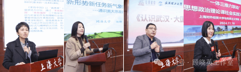 下午场上半段,由“品牌课程有特色”“国一流课程展风采”等板块组成。上海高校思政课教指委思政选修课分教指委委员、上海出版印刷高等专科学校马克思主义学院院长马前锋教授担任主持。beat365手机官方网站秦瑞丽分享了“美育中国”课程建设做法,同济大学运迪则介绍了“改革开放与新时代-乡村振兴的上海图景认知”课程创新,武汉理工大学刘国龙交流了“认识武汉:大国工业”课程做法。上海对外经贸大学庾向芳介绍了“思想政治理论课社会实践”课程设计。上海交通大学马克思主义学院教授、教学名师李梁老师作了点评。