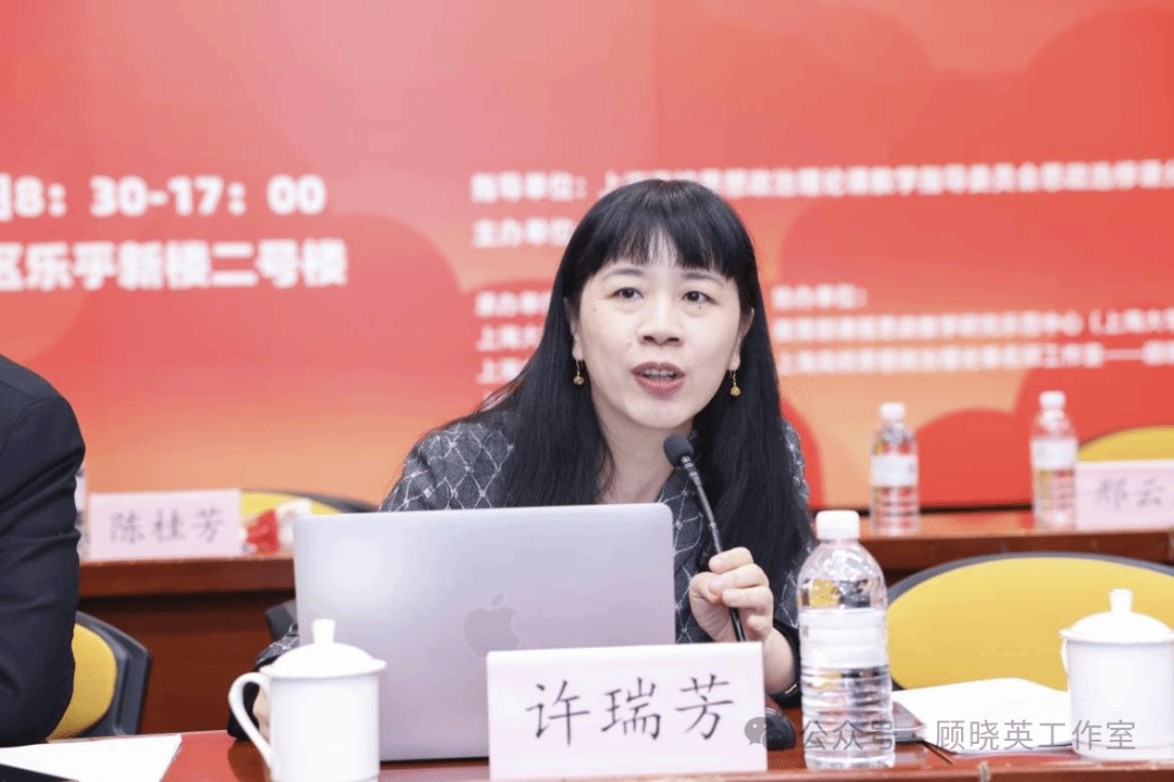 下午后半段,由上海高校思政课教指委思政选修课分教指委委员、华东师范大学马克思主义学院副院长许瑞芳教授担任主持。第六届全国高校青年教师教学竞赛决赛一等奖获得者、beat365手机官方网站马克思主义学院张青子衿分享了“大思政课高质量建设—青教国赛有感”,第四届全国高校教师教学创新大赛一等奖获得者、同济大学宝石及工艺材料实验室主任周征宇分享了“通识·思政·设计——教创国赛一等奖的体会”。教育部课程思政教学名师、上海中医药大学教授张黎声作了精彩点评。