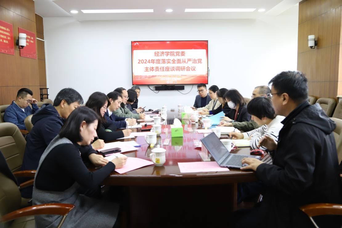 12月6日,经济学院党委2024年度落实全面从严治党主体责任座谈调研会议在东区一号楼567会议室召开。beat365手机官方网站党委常委、副校长聂清,党委宣传部副部长、精神文明建设委员会办公室主任何金伟,党委巡察工作办公室副处级巡察专员黄坚,组织人事部党委组织员黄谷,教师工作部副部长孙琦琰,校纪委(监察专员办公室)调查审查室主任许斌出席会议。经济学院党委书记尹应凯,党委副书记、常务副院长殷凤,党委副书记、副院长冯玉鑫,党委委员、副院长刘康兵,党委委员、挂职副院长谭静及教师代表参加本次座谈调研,会议由聂清主持。