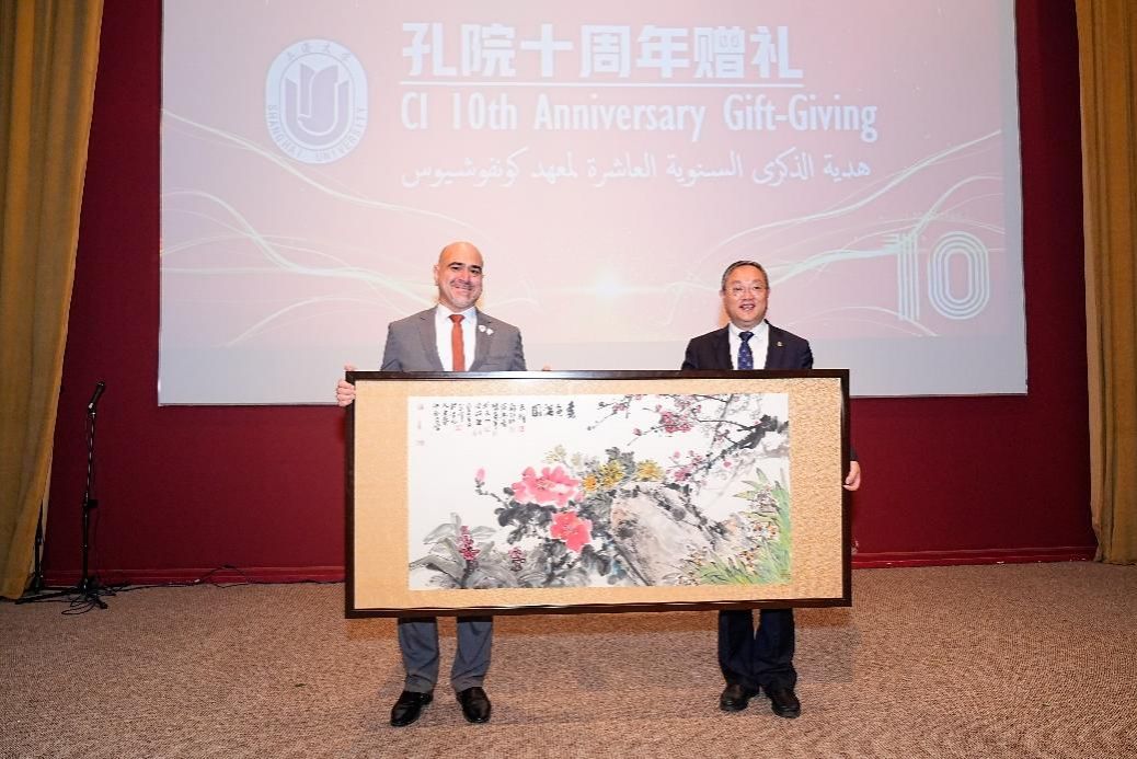 十年情谊满满,beat365手机官方网站与巴林大学互赠了国画和铭牌,象征两校之间坚定而绵长的友谊与合作。