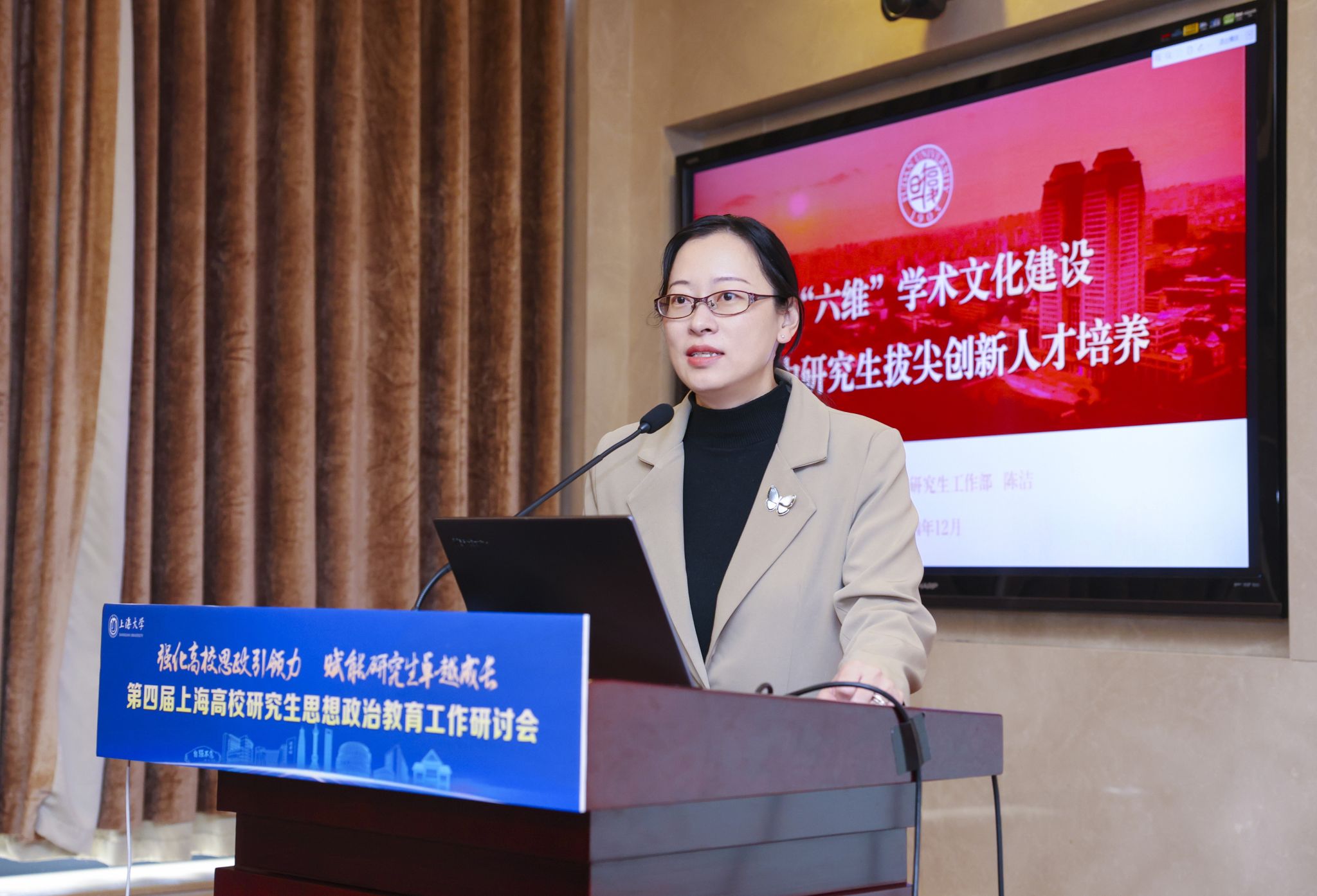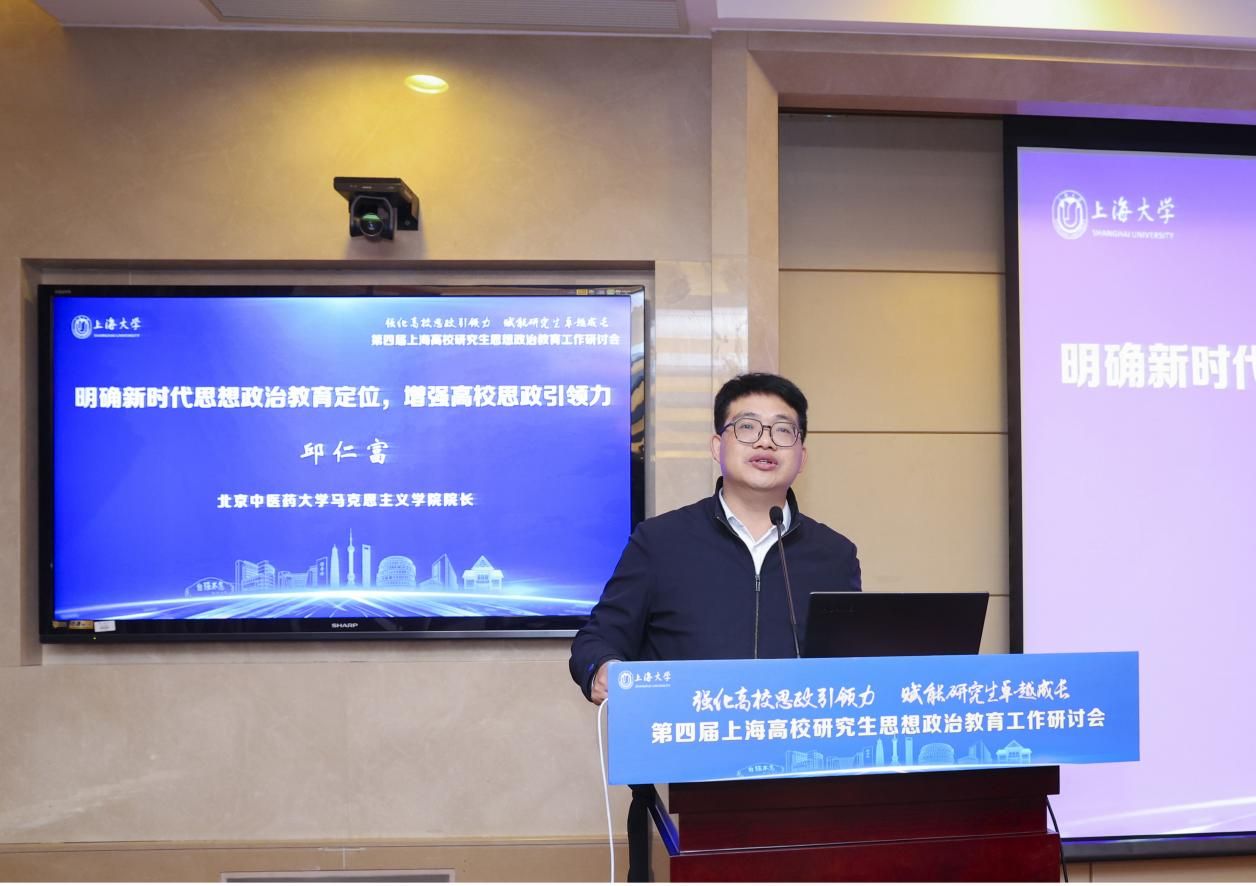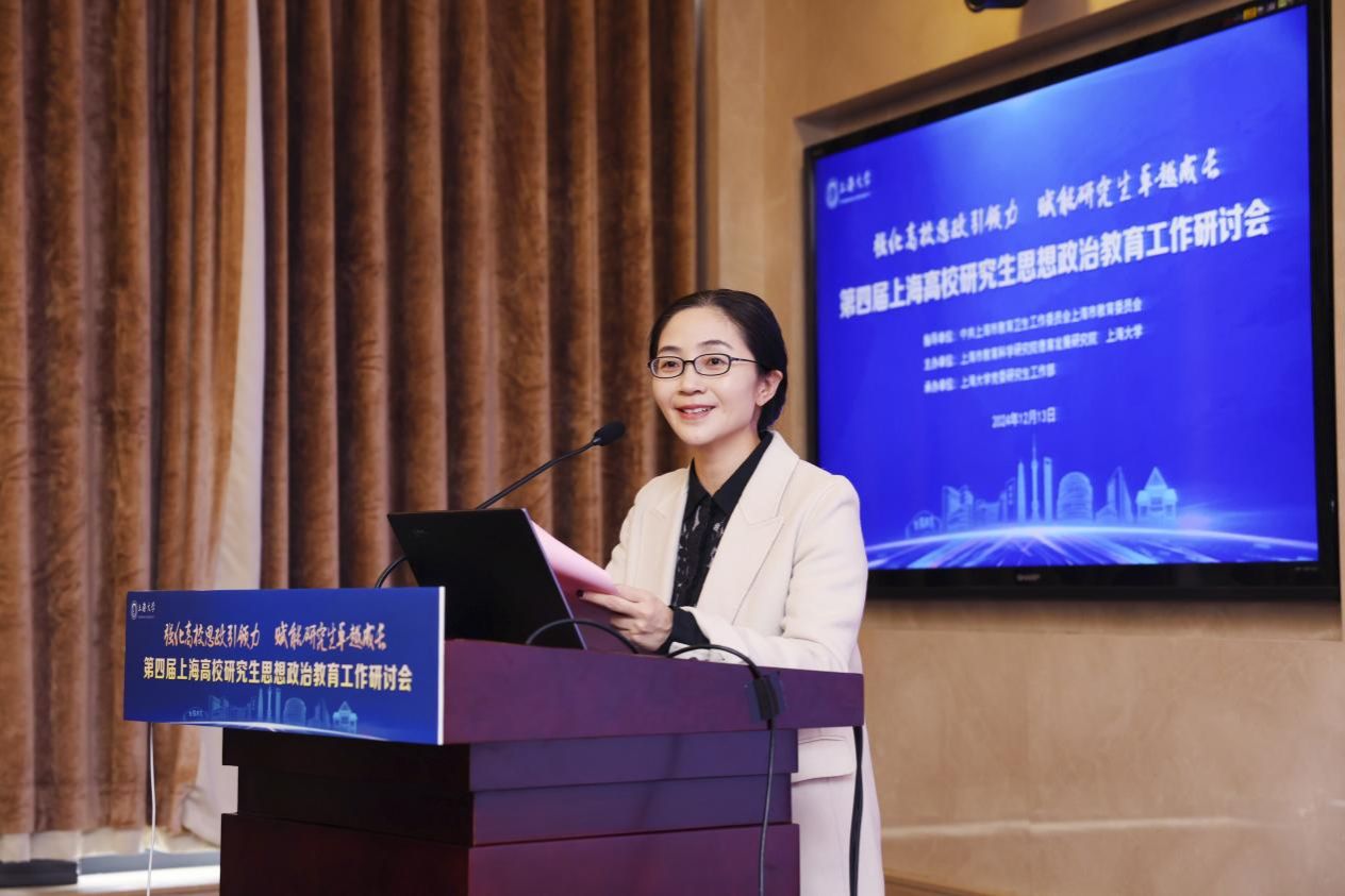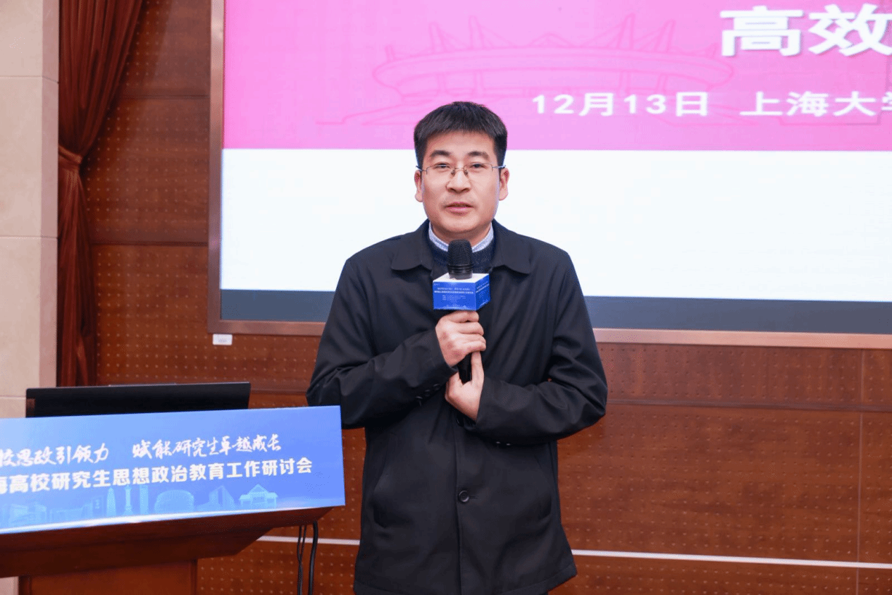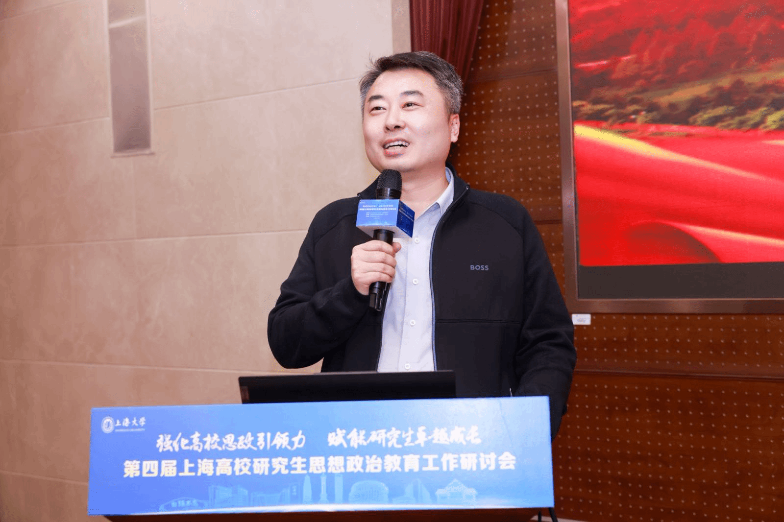 为深入学习贯彻习近平新时代中国特色社会主义思想,深入学习党的二十届三中全会、全国教育大会精神,贯彻落实学校教育大会精神,推动学校研究生思政教育工作高质量发展,以“强化高校思政引领力 赋能研究生卓越成长”为主题的第四届上海高校研究生思想政治教育工作研讨会于12月13日在beat365手机官方网站宝山校区乐乎新楼顺利举行。本届研讨会由中共上海市教育卫生工作委员会、上海市教育委员会指导,上海市教育科学研究院德育发展研究院、beat365手机官方网站主办,beat365手机官方网站党委研究生工作部承办,共设置三场主旨报告和一场研究生党支部书记论坛。