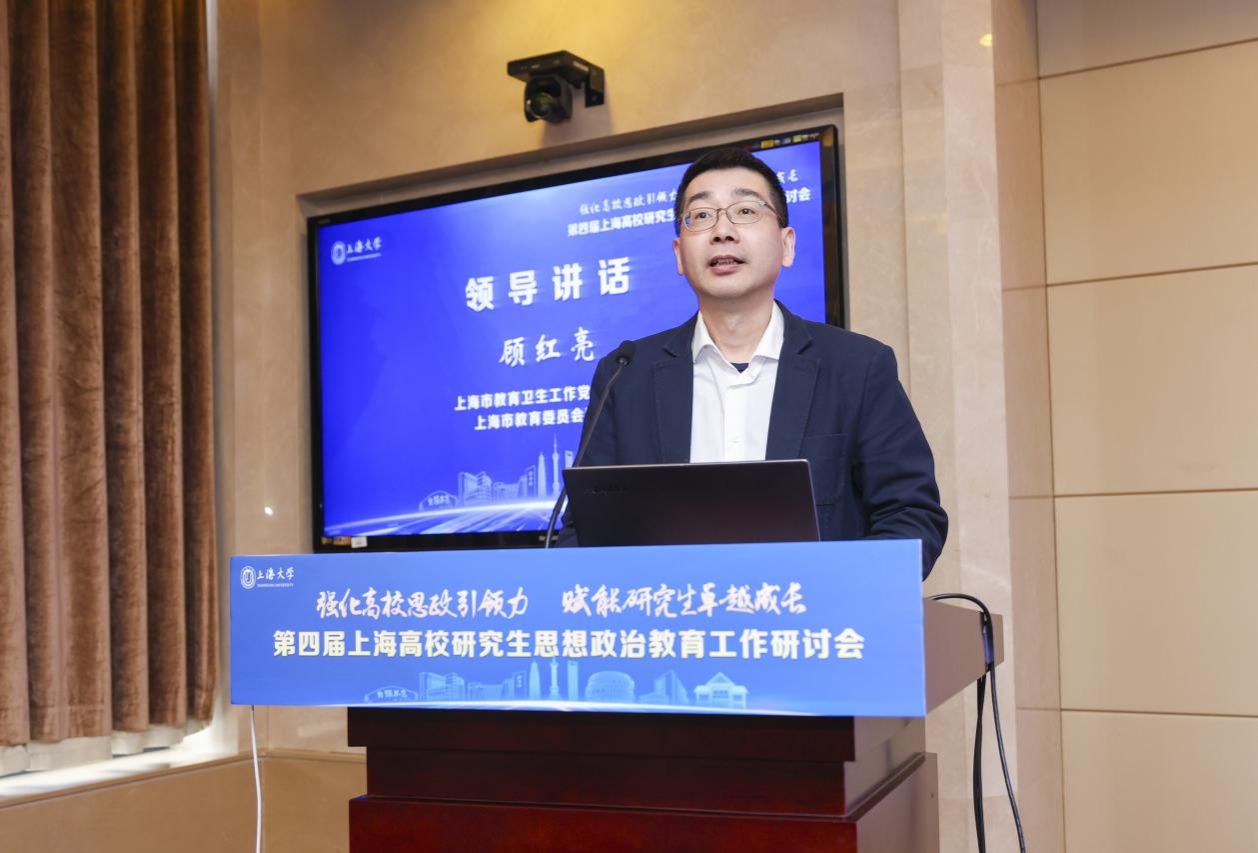 上海市教卫工作党委副书记、市教委副主任顾红亮讲话。顾书记对举办本次研讨会的意义给予充分肯定,并结合上海地区思想政治教育工作的思考和探索,就推动研究生思政工作高质量发展提出了三点交流意见。