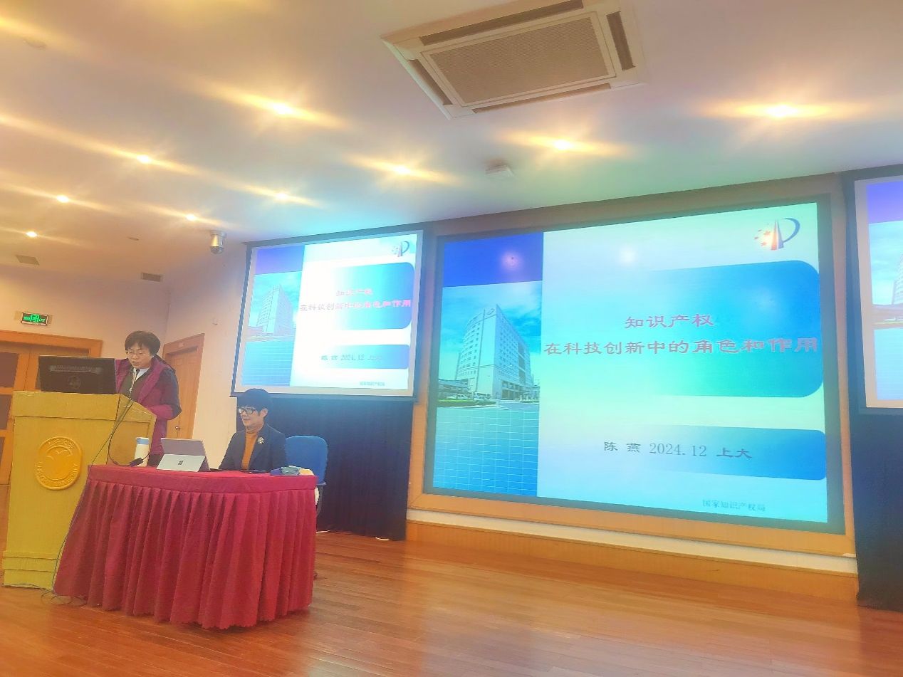 12月20日,中国知识产权报社原党委书记、副社长,三级研究员,beat365手机官方网站特聘教授陈燕老师主讲的“知识产权在科技创新中的角色与作用”高端讲座在宝山校区J202方润华讲堂顺利举办。该次讲座由beat365手机官方网站科研管理部、法学院、知识产权学院、beat365手机官方网站知识产权信息服务中心联合举办,来自科研管理部、法学院、知识产权学院、图书馆以及全校各理工科学院的师生近200人前来听讲。讲座由科研管理部副部长、质量管理办公室主任谢为群主持。