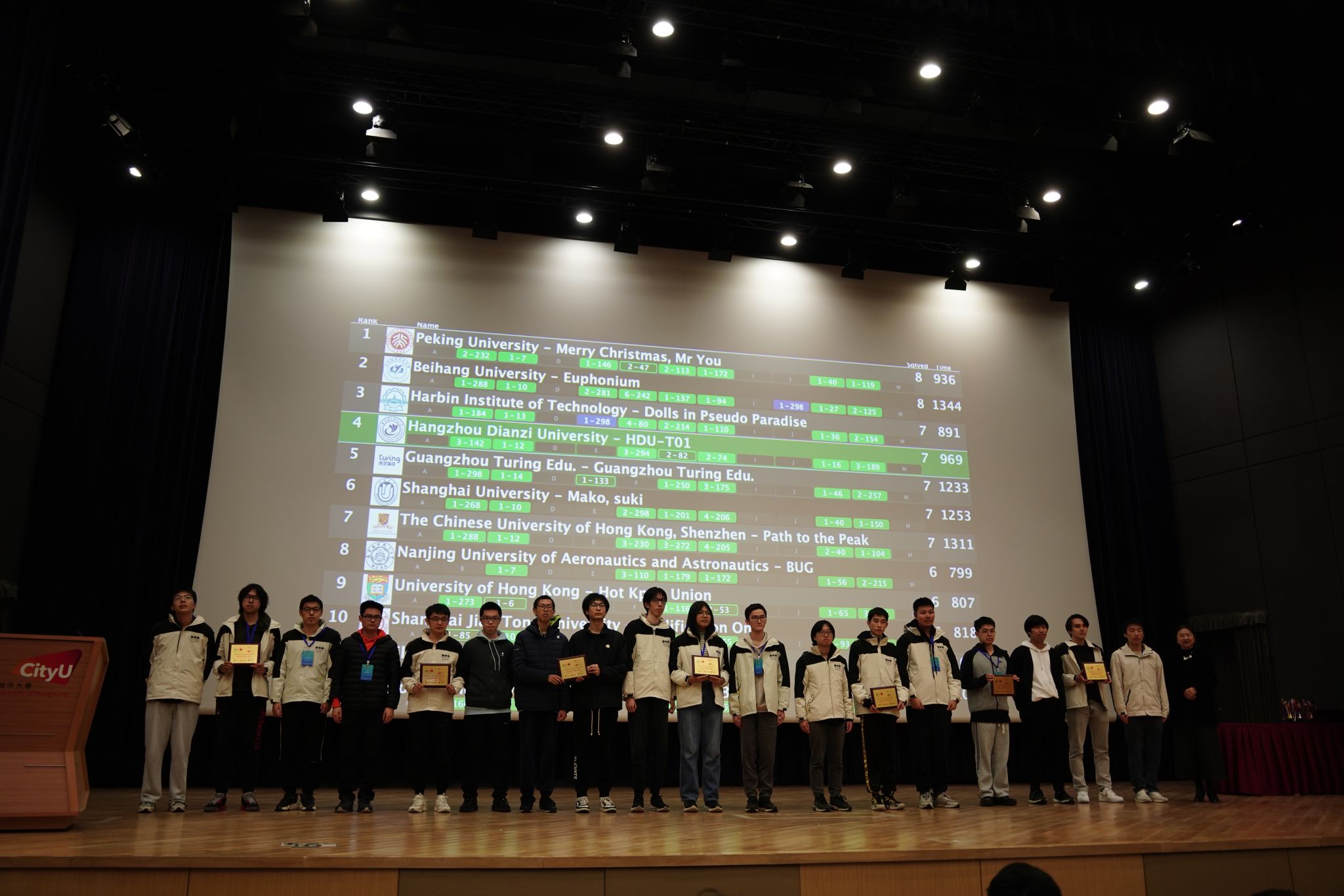 近日,由香港理工大学和香港城市大学联合承办的第49届国际大学生程序设计竞赛(ICPC)亚洲区域赛(香港)成功举办。计算机学院副院长李晓强、专业教师沈俊作为指导教师,带领陶钧、松浩然、耿鹏成三位队员组成的beat365手机官方网站代表队参加比赛。