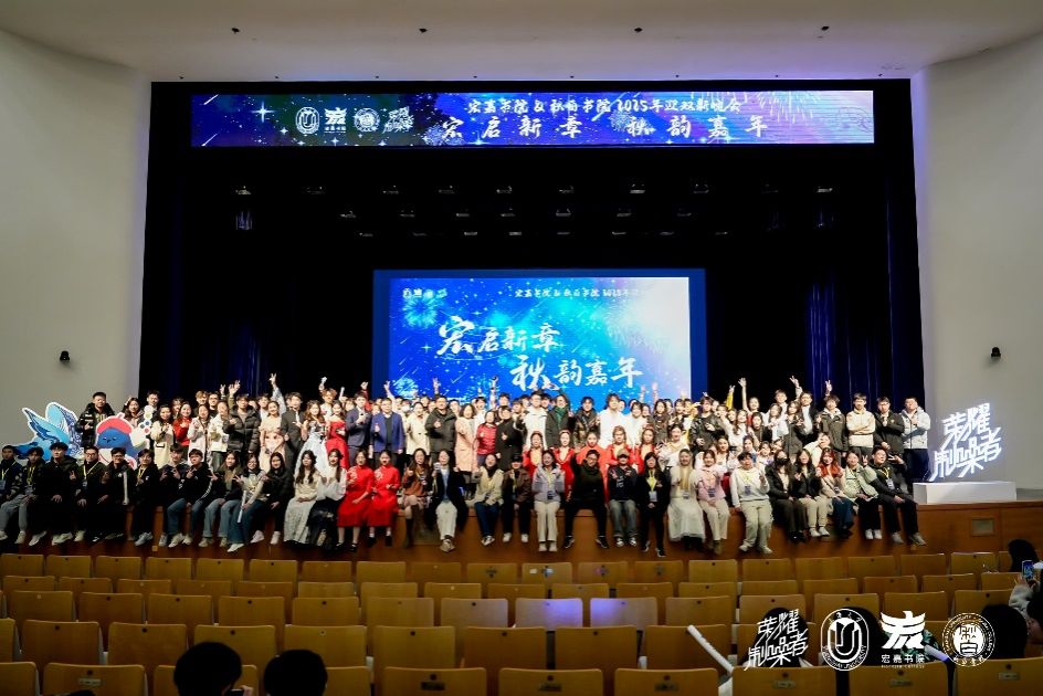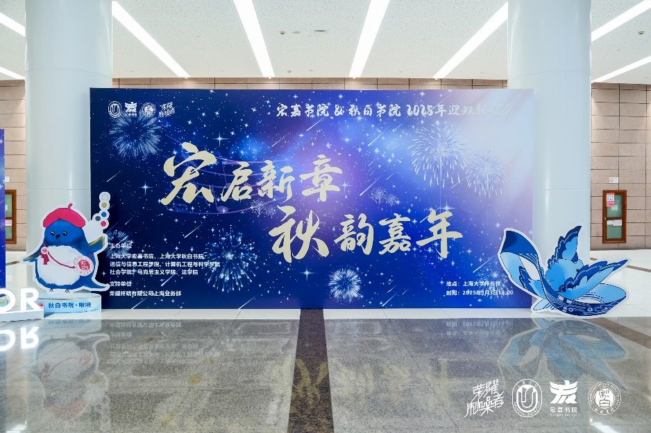 1月3日晚,“宏启新章,秋韵嘉年”——beat365手机官方网站宏嘉书院&秋白书院2025年迎双新晚会在宝山校区伟长楼盛大启幕。beat365手机官方网站团委书记王鸿栋,beat365手机官方网站社会学院党委书记杨锃,荣耀终端有限公司上海业务部零售主管刘沛,beat365手机官方网站学生工作办公室副主任、本科生书院管理中心副主任马成瑶,beat365手机官方网站本科生书院管理中心(“一站式”学生社区中心)副主任高恺华、佟丽宁,宏嘉书院、秋白书院相关领导、荣耀嘉宾、学院全程导师代表、辅导员代表以及800余名同学,共同参与这场新年盛会,共同感受青春活力、书院温情与新年希望。晚会由宏嘉书院、秋白书院学子共同主持。