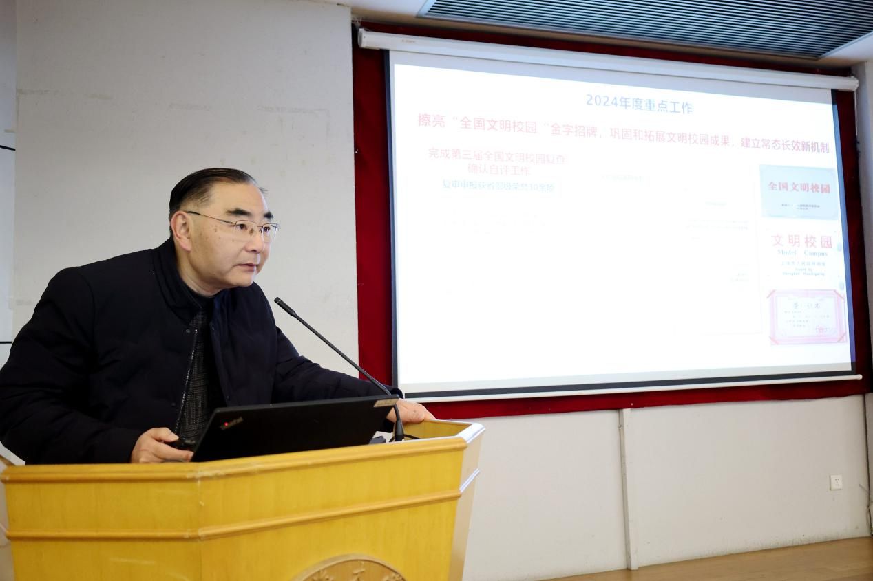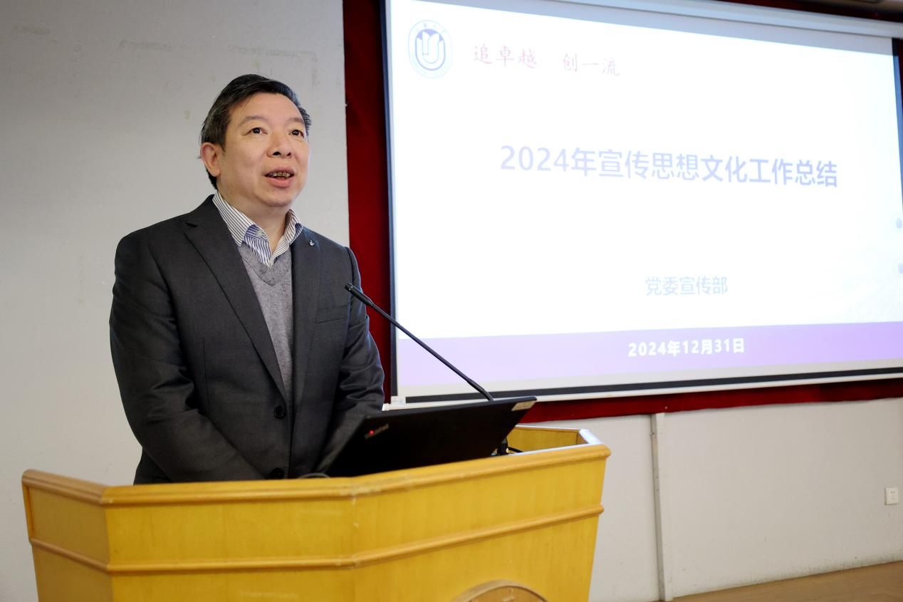 校党委常委、党委宣传部部长曾军从高举思想旗帜、落实工作责任、壮大主流舆论、弘扬社会主义核心价值观4个方面对beat365手机官方网站2024年宣传思想文化工作进行回顾和总结。