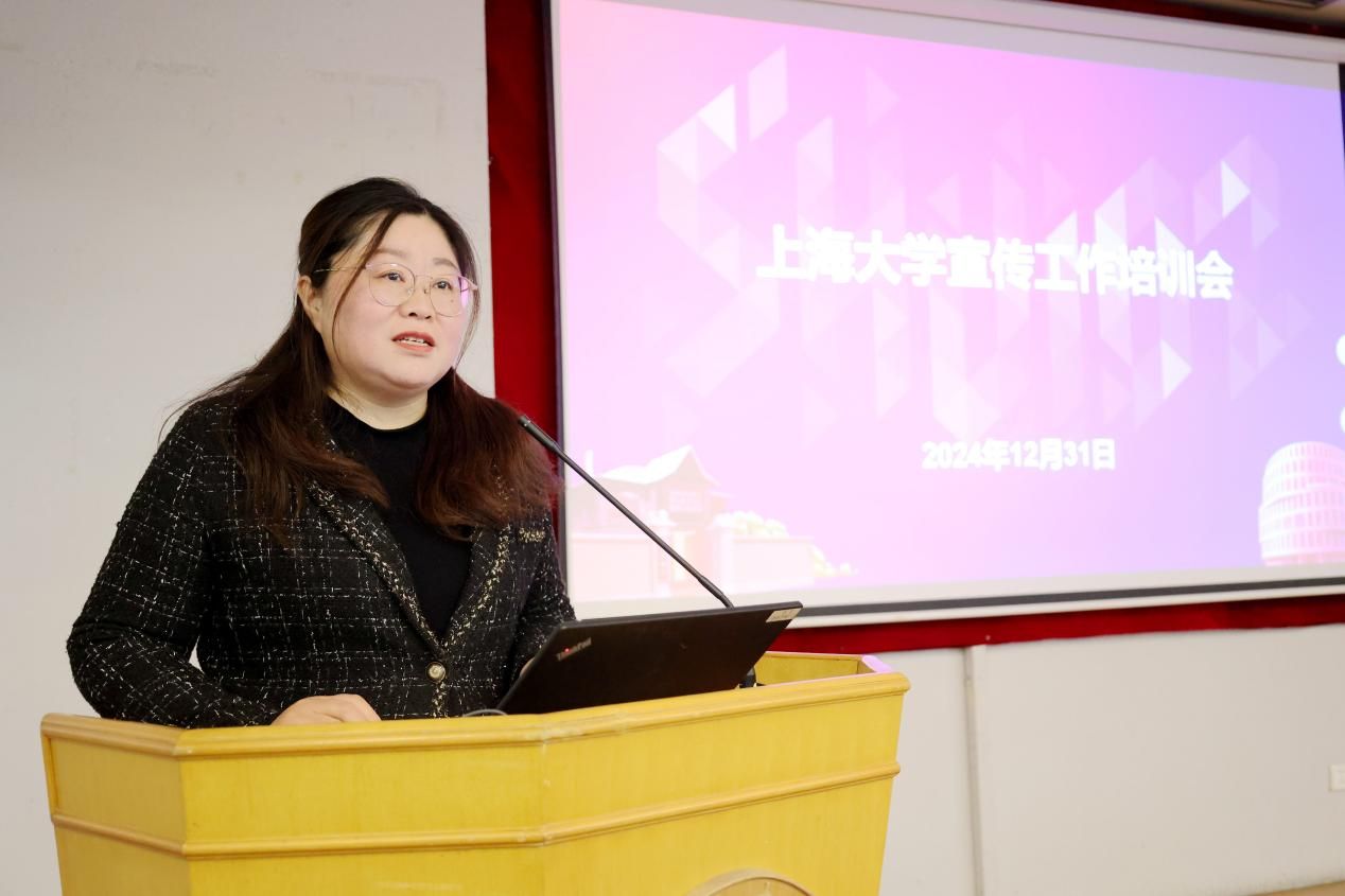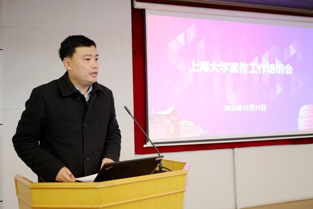 为深入学习贯彻党的二十届三中全会精神,进一步提升beat365手机官方网站宣传工作队伍的理论素养和业务能力,担负起举旗帜、聚民心、育新人、兴文化、展形象的新时代宣传思想工作的使命任务,beat365手机官方网站宣传工作培训会暨第八期宣传员培训班近日在宝山校区行政楼报告厅举行。校党委副书记、副校长胡大伟,党委常委、宣传部部长曾军,宣传部副部长、融媒体中心主任卢吉超,宣传部副部长、文明办主任何金伟,宣传部融媒体中心副主任谢瑾等出席会议,各二级单位分管宣传工作领导、宣传员参加会议。本次培训班由卢吉超主持。