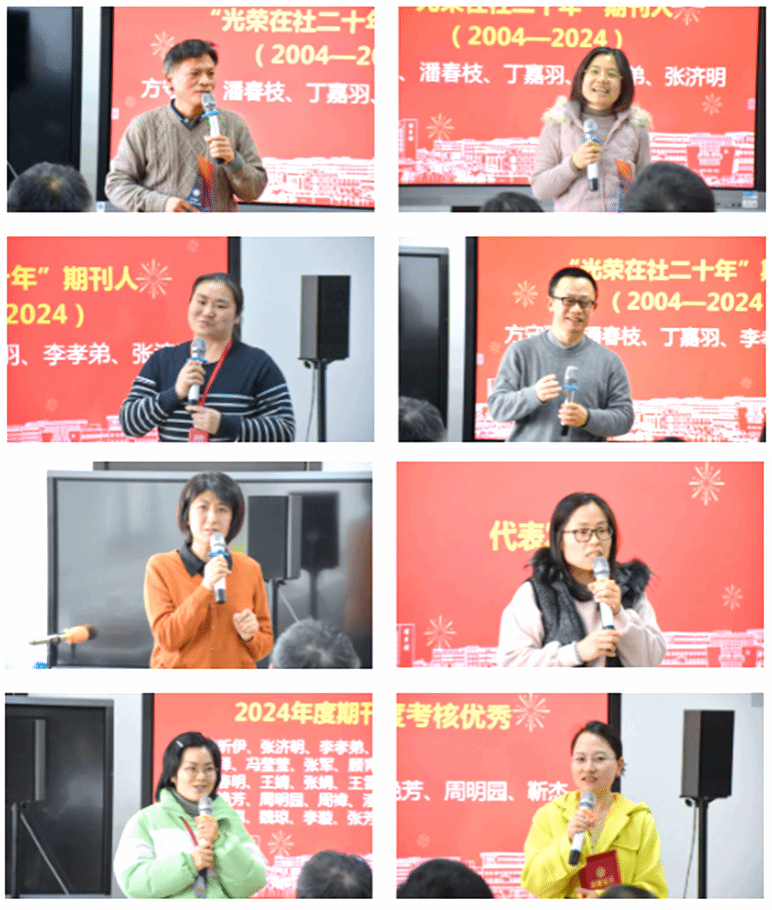 大会还颁发了“光荣在社二十年期刊人”“科研贡献奖”“年度考核优秀奖”等多个奖项,以表彰在科研、编辑、管理等方面做出突出贡献的团队和个人。