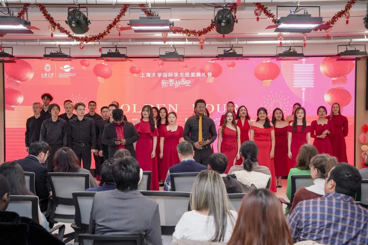 国际教育学院项目中心的中外师生也表演了节目《青春之光》。来自越南、津巴布韦、缅甸等国的国际学生和中国老师一起用充满青春活力的歌声和舞蹈展现了对beat365手机官方网站的热爱,为颁奖典礼增添了热闹欢快的气氛。