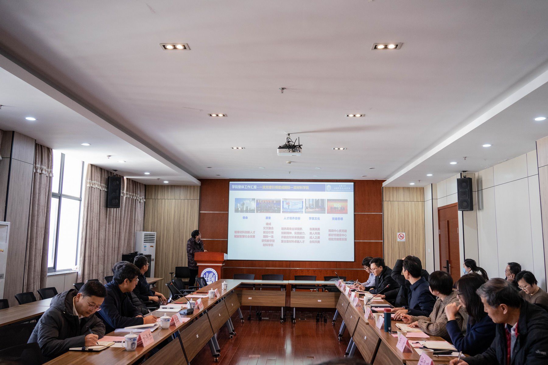 材料学院党委书记黄健就本科生全程导师建设、师德师风建设和青年教师培养等工作进行了重点汇报,学院党政领导班子成员及学院与会人员分别就学生培养、学科发展、科研工作、核心基地建设和发展战略等工作做了补充发言,学校部处参会人员针对发言内容进行呼应交流和讨论。
