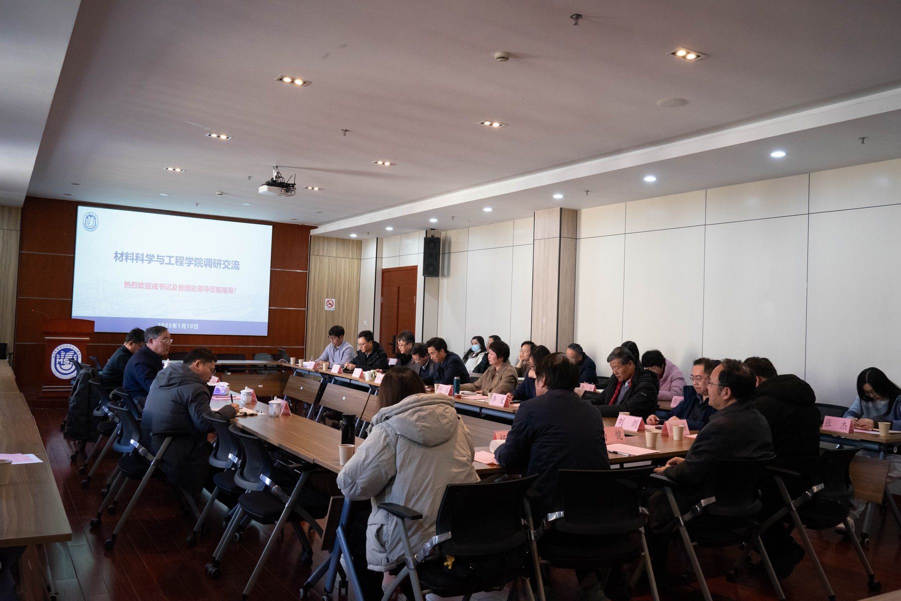 2025年1月10日下午,校党委书记成旦红带队调研材料学院。党政办公室副主任、信访办公室主任凌长臣,组织人事部组织处副处长、机构编制委员会办公室副主任张云中,发展规划处副处长刘伟杰等陪同调研。材料学院党政领导班子成员、省部共建高品质特殊钢冶金与制备国家重点实验室主任、系所主任、高层次人才代表以及“双带头人”教工党支部书记参加了此次调研。