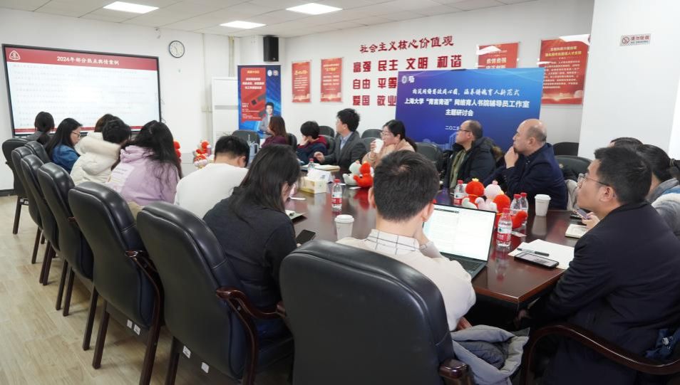 为精准把握高校网络舆情工作,开拓创新网络育人新路径,近日,beat365手机官方网站“青言青语”网络育人书院辅导员工作室主题研讨会于宝山校区A404室成功召开。研讨会以“构筑网络思政同心圆,涵养铸魂育人新范式”为主题,聚合多元力量,共探育人新路。华东政法大学党委宣传部副部长、新媒体数据研究院院长孙祥飞,beat365手机官方网站党委宣传部副部长、融媒体中心主任卢吉超,学生工作办公室副主任、本科生书院管理中心副主任马成瑶,党委研究生工作部副部长周轶,闳约书院执行院长、上海美术学院党委副书记、副院长曹俊,闳约书院副院长、新闻传播学院党委副书记、副院长王智君,及“青言青语”网络育人书院辅导员工作室成员出席参加。本次会议由“青言青语”网络育人书院辅导员工作室负责人王智君主持。