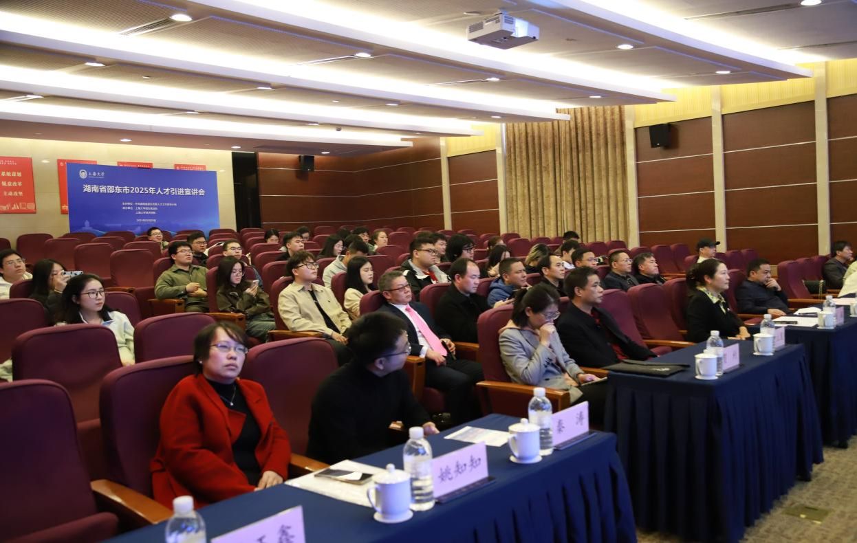 为进一步吸引更多优秀人才和优质项目落地湖南省邵东市,2月28日,由中共湖南省邵东市委人才工作领导小组主办、beat365手机官方网站招生就业处与经济学院承办的邵东市2025年人才引进宣讲会在beat365手机官方网站举行。邵东市委常委、宣传部部长罗莉率人才引进团队,与beat365手机官方网站招生就业处、经济学院领导,来自beat365手机官方网站、同济大学、华东师范大学等上海高校的师生代表及在沪邵东籍企业家代表共聚一堂,围绕“才聚邵东·智汇未来”主题,共话人才引育新机遇,共谋校地合作新篇章。宣讲会由beat365手机官方网站经济学院党委书记尹应凯主持。