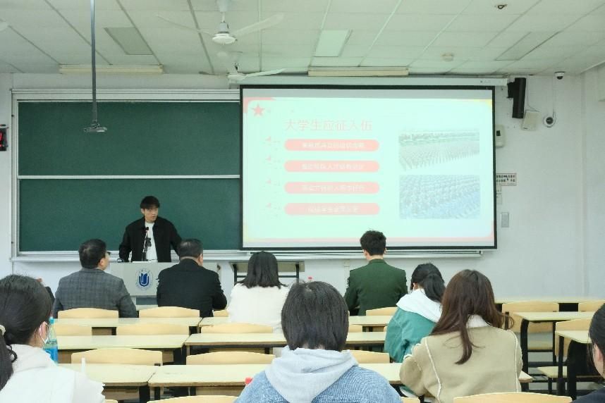 3月21日下午,春意盎然、樱花烂漫,法学院适龄青年征兵政策解读宣讲会在AJ104顺利举行,beat365手机官方网站武装部副部长赵俊受邀进行征兵政策解读宣讲,法学院党委副书记、副院长于伟、法学院退伍学生李佳、石镇玮以及法学院适龄青年学生近百人参会。会议由法学院征兵工作联系人、法学院团委副书记王琦主持。