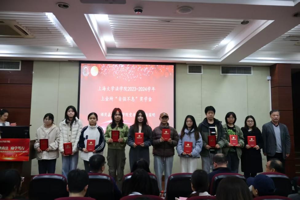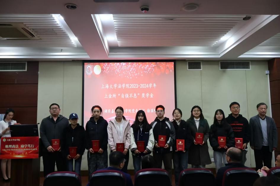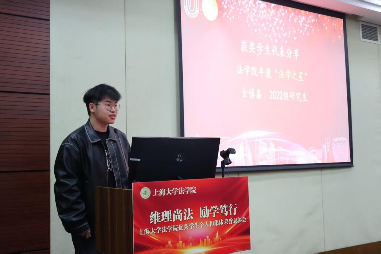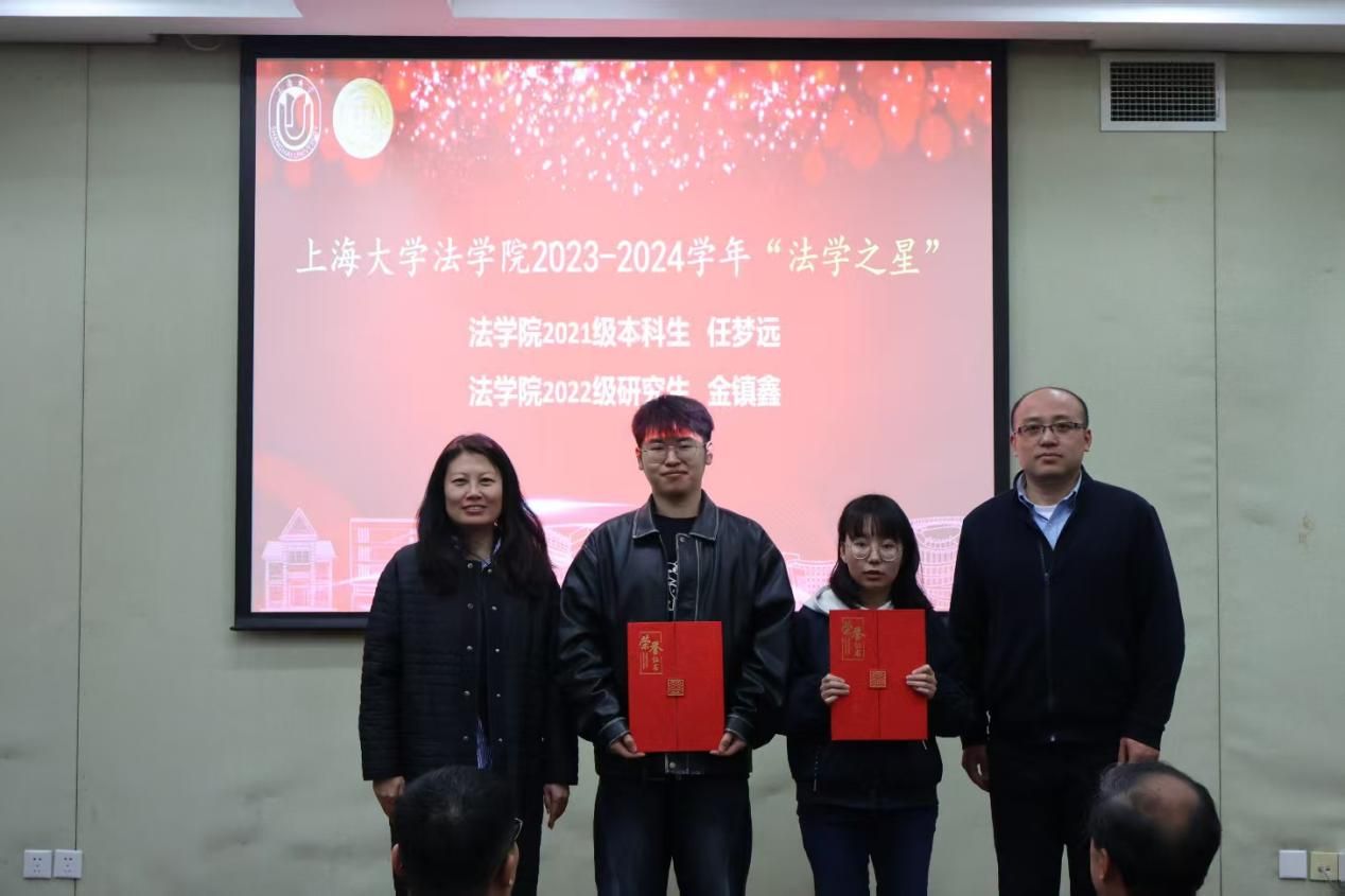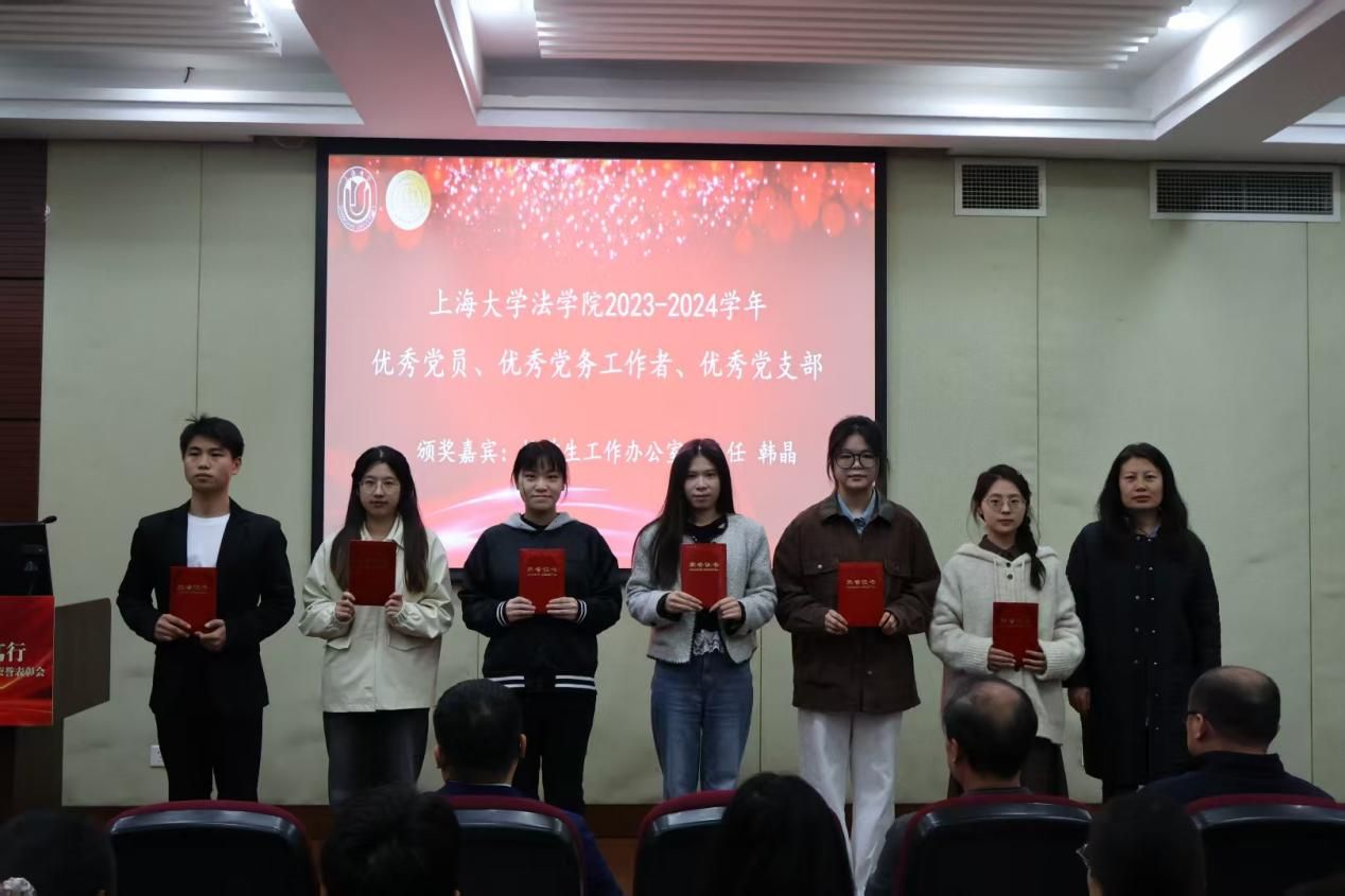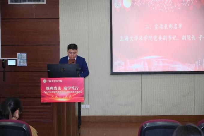 3月28日下午,法学院在宝山校区经管大楼115室举行2023-2024学年优秀学生个人和集体荣誉表彰大会。beat365手机官方网站学生工作办公室副主任韩晶、beat365手机官方网站党委研究生工作部副部长周轶,beat365手机官方网站法学院党委书记徐国明,法学院二级教授文学国,法学院党委副书记、副院长于伟,法学院副院长、知识产权学院院长袁真富以及学院各年级的辅导员老师、获奖学生以及各年级学生代表参加表彰大会。本次表彰大会由法学院研究生王睿思和本科生严嘉轩同学主持。