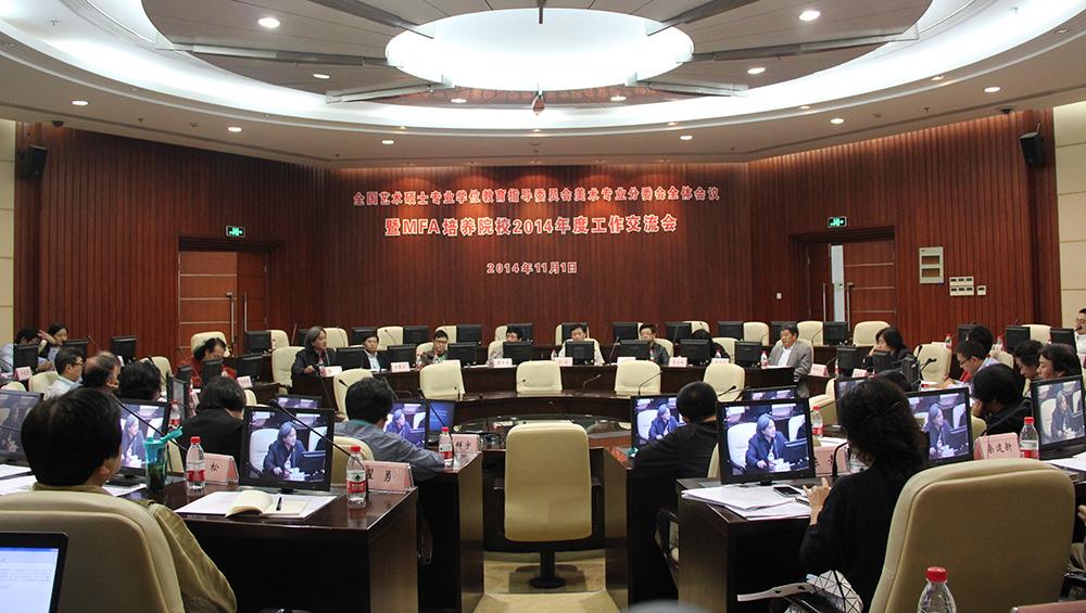 11月1日,全国艺术硕士专业学位教育指导委员会美术专业分委会全体会议暨MFA培养院校2014年度工作交流会在beat365手机官方网站国际会议中心举行。此次会议由全国艺术硕士专业学位教育指导委员会主办,beat365手机官方网站美术学院承办。艺术硕士教指委美术与设计专业分委会召集人、中国美术学院艺术人文学院院长曹意强,南京师范大学美术学院院长刘赦,艺术硕士教指委秘书处、中央音乐学院宋慧文,艺术硕士教指委秘书处美术分委主任、南京师范大学康凯,beat365手机官方网站研究生常务副院长郭长刚等分委会委员及培养院校领导嘉宾50余人齐聚一堂,共同讨论艺术硕士培养方案。会议由beat365手机官方网站美术学院院长汪大伟主持。