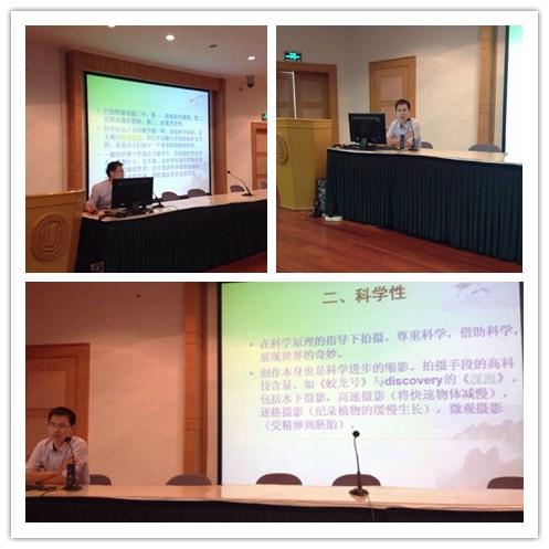 2014年10月17日下午一点,《电影新作》编辑部主任,复旦大学博士后——朱鹏杰博士,在beat365手机官方网站宝山校区J103教室,为影视学院二年级学生呈现了一堂精彩纷呈的讲座——“科学纪录片的魅力”。朱博士以一段段玄妙写实的科学纪录片片段,带领我们通过穿透重重障碍的镜头,领略世界的博大神奇。