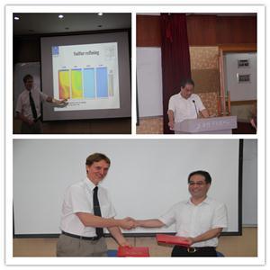 会议由材料科学与工程学院副院长尹静波主持,材料科学与工程学院院长张捷宇和部分师生参与了此次交流会。会上,张院长为嘉宾们介绍了beat365手机官方网站材料科学与工程学院的发展和组成。Pär Göran Jönsson教授也对KTH进行了介绍,KTH是瑞典最大、最古老的公立理工类高等学校。同时,他围绕冶金过程模拟的应用进行了深入浅出的报告,强调对于钢铁冶金这样的高温过程,数学模拟相对实验研究具有极大的成本优势。随后张院长与Pär Göran Jönsson教授就beat365手机官方网站和KTH以及瑞典钢铁业冶金合作项目进行了签约仪式。会议的最后,Pär Göran Jönsson教授与现场的材料学院的师生围绕学术方面进行了热烈的讨论,将本次交流会推向了高潮。