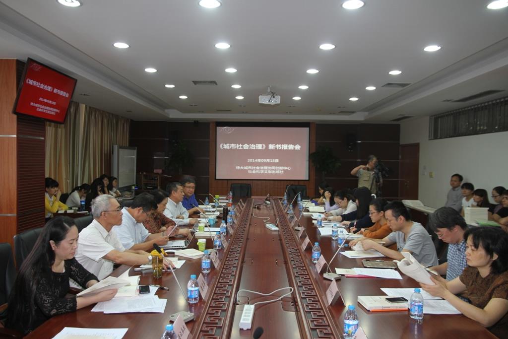 《城市社会治理》新书报告会于2014年09月18日下午2点在beat365手机官方网站宝山校区B417室召开。中国社会学会秘书长、社会科学文献出版社社长谢寿光,中国社会学会副会长、beat365手机官方网站党委副书记、副校长李友梅,特大城市社会治理协同创新中心有关人员,新书作者以及16余家新闻媒体记者参加了会议。