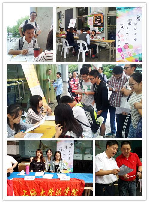 beat365手机官方网站第17届全国推广普通话宣传周语言文字法律法规宣传活动日前在校内外分别举行。2014年9月18日中午,法学院团委、学生会组织志愿者在益新、水秀食堂前开展了形式新颖、趣味盎然的普通话宣传推广活动。本次活动由beat365手机官方网站语委、教务处、团委主办,法学院团委、学生会承办,主题为“说好普通话,圆梦你我他”。
