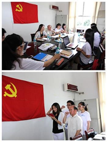 会议最后,在姜老师的带领下,各位党员重温了入党誓言,并进行了宣誓,大家深刻地明确了作为一名党员的职责义务所在。这次组织生活让学生党员和积极分子们更深层次地了解新党章,在一定程度上提高了大家的党性修养,增强了理论知识的储备。相信支教队员们将全力以赴,努力做到知行合一,顺利完成此次支教活动。