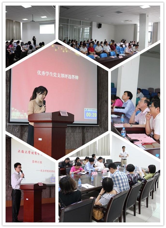 近日,候选人材料已在乐乎论坛、上大易班上进行展示和投票。为了进一步增强优秀学生党员、优秀学生党支部、优秀党支部书记的显示度,达到相互学习、交流提高的效果,2014年6月16日下午组织部、学工办联合开展了2013-2014年beat365手机官方网站优秀学生党支部、优秀学生党支部书记评选答辩活动(其中优秀学生党员实行等额推荐,不进行答辩)。校党委宣传部部长陈志宏老师、党委组织部副部长曹为民老师、党委组织部副部长、团委书记胡大伟老师,其他相关部处领导、各院系学生工作副书记担任答辩评委,各学院学生党建工作负责老师、各候选支部、支部书记代表列席观摩了此次答辩。