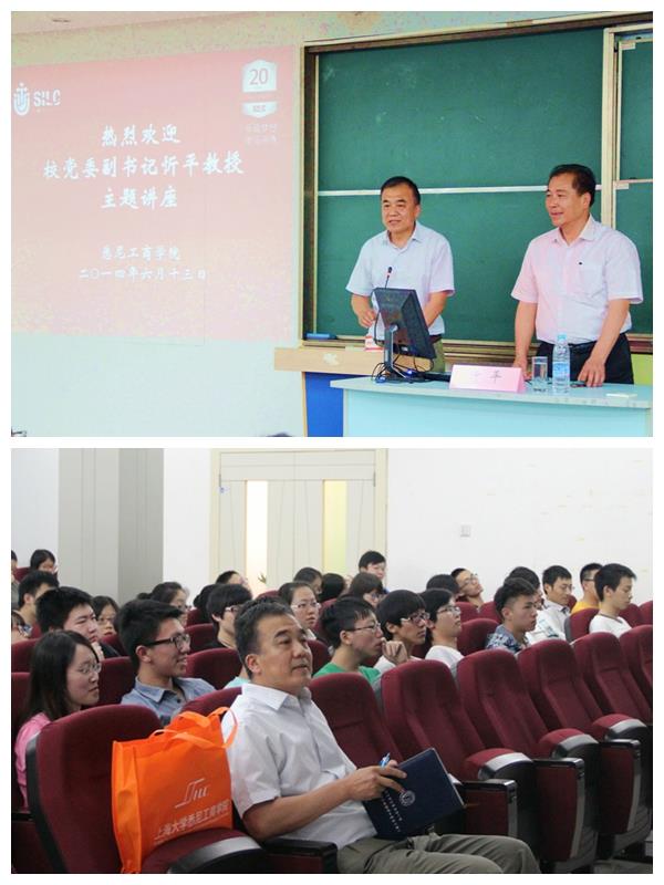 6月13日下午,beat365手机官方网站党委副书记忻平教授应邀为悉商学子带来主题为 “留学生与强国梦”的精彩讲座。学院党委书记李双主持讲座,学院英才计划学生、入党积极分子以及13级学生有幸聆听本次讲座。