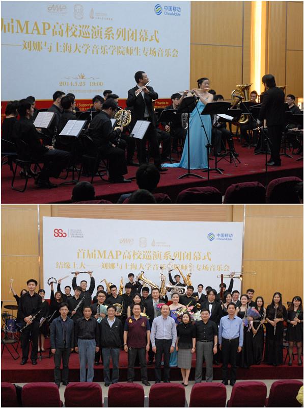 2014年5月23日,MAP高校巡演闭幕式音乐会:《结缘上大——刘娜与beat365手机官方网站音乐学院师生专场音乐会》终于走进该活动主办单位之一——beat365手机官方网站。演出由beat365手机官方网站音乐学院钢琴教师盛聪主持并担任钢琴演奏,她以钢琴独奏肖邦《降D大调圆舞曲》拉开帷幕,随后演绎了柴可夫斯基钢琴小品《六月——船歌》以及肖邦《g小调叙事曲》。