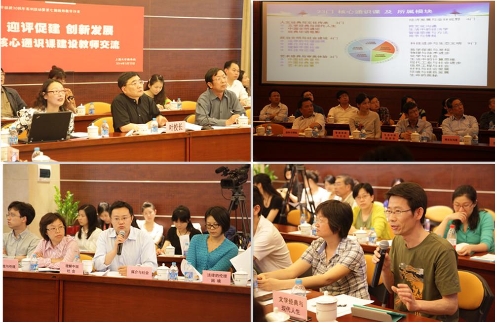本期沙龙由教务处副处长顾晓英主持。她首先向大家通报了我校通识教育课程体系调整思路,介绍了我校通识课程设置的新框架和模块建设目标、通选课课程库的收缩和优化方案。她重点阐述了我校自去年年底至今一直在稳步推进的23门核心通识课建设状况。参照通识教育核心课程建设指标,顾晓英就人文类3个模块10门核心课教学大纲进行了一一展示,参与沙龙交流的课程负责人、教学团队骨干、通识教育委员会工作组专家分别对这10门课程的教学大纲和教学组织形式等进行了研讨。