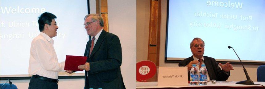 2014年5月23日,德国卡塞尔大学终身教授Ulrich Teichler受学科建设办公室、高等教育研究所邀请来访beat365手机官方网站,作“东方讲坛”系列报告。beat365手机官方网站党委书记于信汇听取了报告,并向Ulrich Teichler授予了beat365手机官方网站“自强教授”称号。