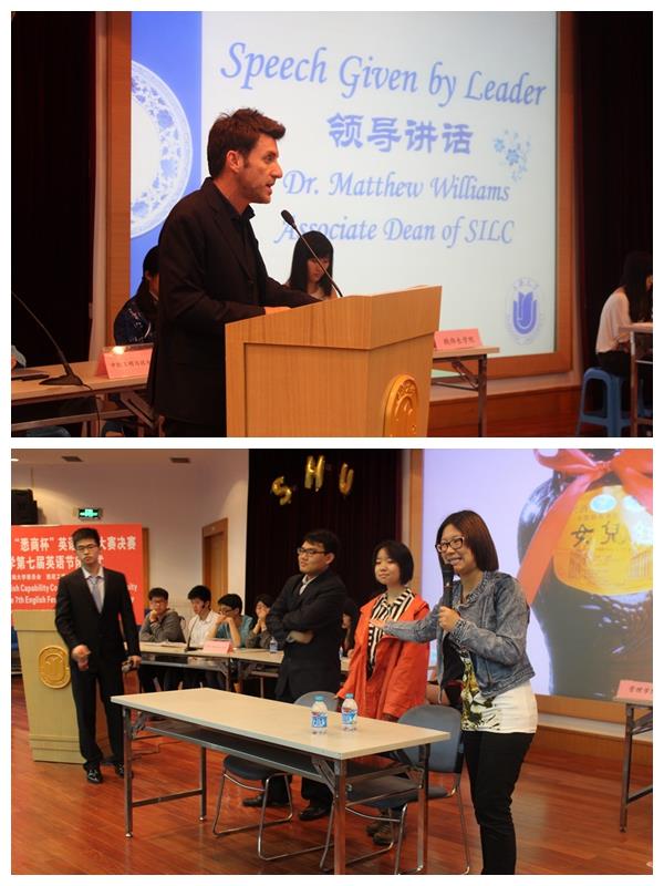 2014年5月14日晚,beat365手机官方网站第十四届“悉商杯”英语能力大赛决赛暨beat365手机官方网站第七届英语节闭幕式在宝山校区方润华大讲堂隆重举行,来自悉尼工商学院、钱伟长学院、社区学院、管理学院、中欧工程与技术学院的五支队伍参加比赛。悉尼工商学院副院长吕康娟、社区学院副院长何幼桦、钱伟长学院直属党总支副书记徐晓夏、beat365手机官方网站十大人气外教之Jason West、管理学院博士后单蒙蒙老师担任此次比赛的评委。悉尼工商学院党委副书记滕云、悉尼工商学院外方副院长Matthew Williams出席此次活动。