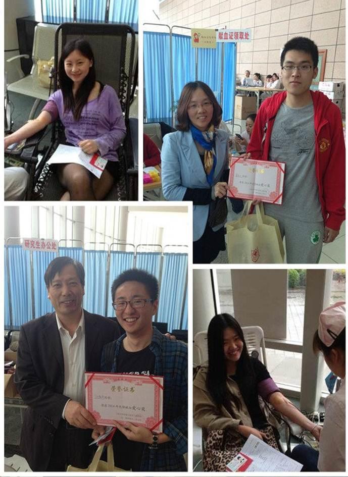 为弘扬珍爱生命的人道主义精神,环化学院积极响应学校号召,积极动员并组织学生参与今年的无偿献血活动。4月25日上午,学院副院长陈捷、党委副书记王宇华、环境系主任何池全、副主任刘晓艳、化工系主任王勇、教工支部书记张宝华、班导师刘红来到伟长楼现场慰问了参与献血的同学们,肯定了他们无私奉献的精神,更不忘嘱咐大家在献血后好好休养。