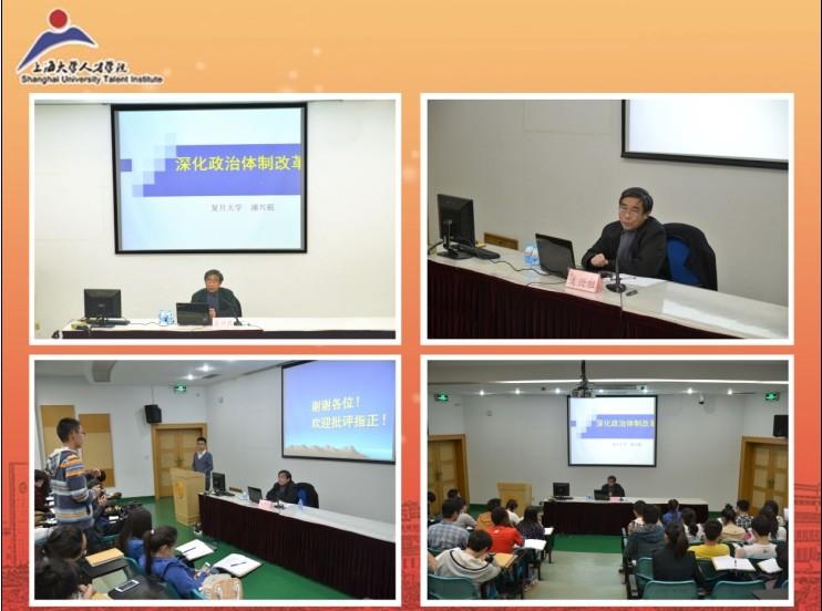 4月25日下午2点,复旦大学国际关系与公共事务学院的浦兴祖教授做客beat365手机官方网站人才学院,在教学楼J101报告厅带来了以“深化政治体制改革”为主题的专题讲座。作为中国在恢复政治学、行为学等学科后的第一批教学研究者之一,浦教授在近三个小时的讲座中,以平实、凝练的语言为学员们详细阐述了中国政治体制改革道路,使学员们深刻了解了政治制度的发展道路及其现状。学员们在聆听的过程中不仅拓展了视野,深化了思考,更提高了政治素养。