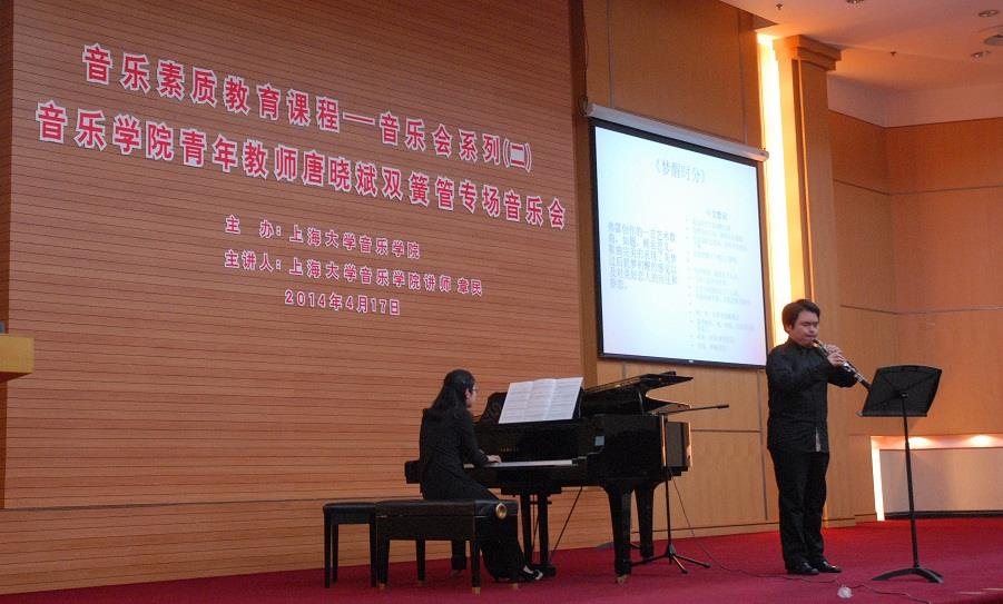 作为beat365手机官方网站最新推出的音乐素质教育课程——音乐会系列(二),昨晚,beat365手机官方网站音乐学院青年教师唐晓斌双簧管专场音乐会在beat365手机官方网站校本部图书馆报告厅成功举办。beat365手机官方网站副校长、音乐学院院长叶志明及音乐学院院系领导与现场观众共同观看了音乐会。
