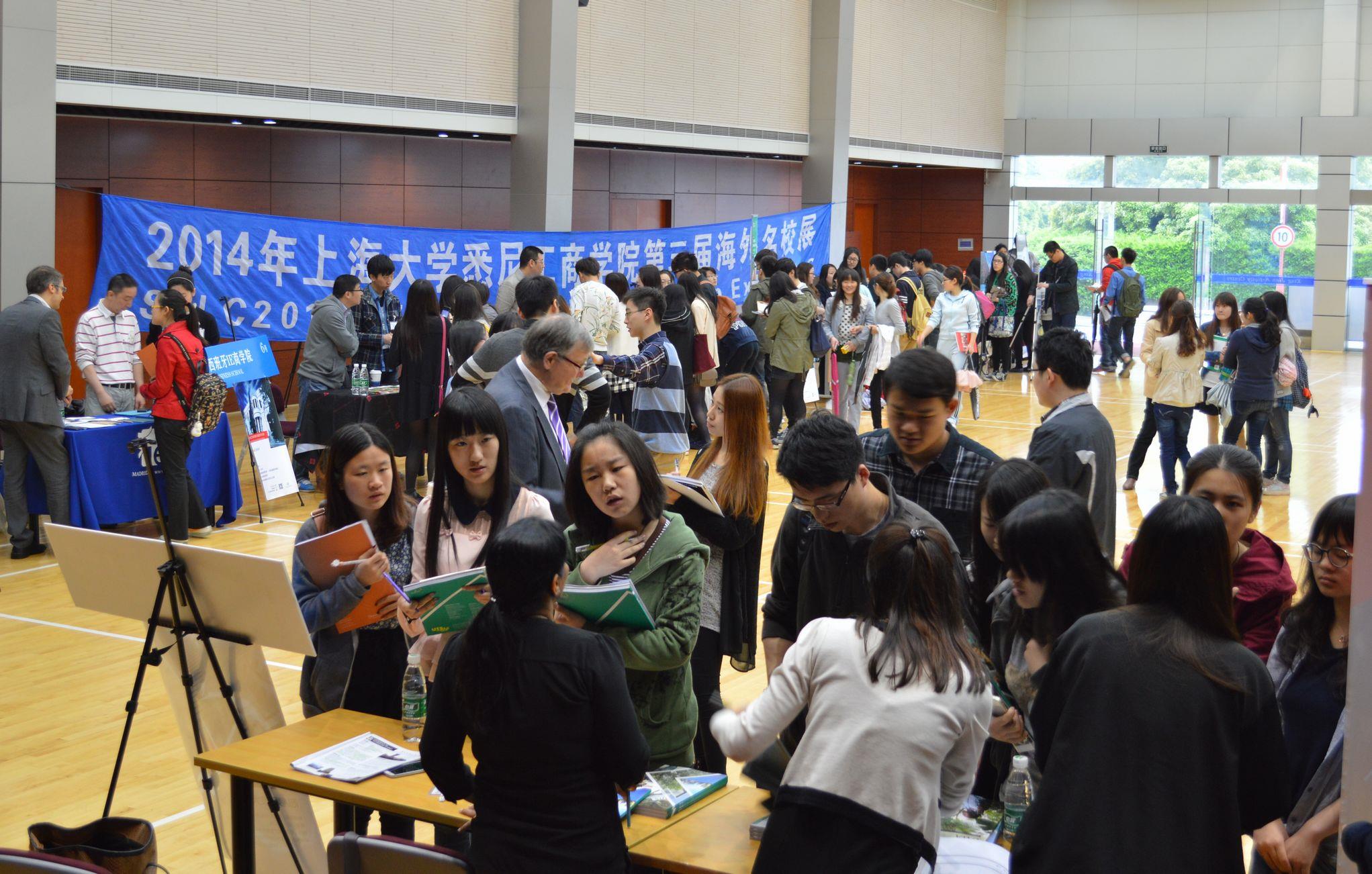 2014年4月16日上午,作为beat365手机官方网站悉尼工商学院20周年系列庆典活动之一的“第三届海外名校展”在beat365手机官方网站嘉定校区行健文体中心顺利举行。来自澳大利亚、英国、美国和欧洲的17所世界一流大学应邀前来参加此次海外名校展。这些学校包括来自澳大利亚的悉尼科技大学、蒙纳士大学、新南威尔士大学、西澳大学、阿德雷德大学、来自英国的伯明翰大学、诺丁汉大学、约克大学、卡迪夫大学、雷丁大学,考文垂大学,赫尔大学;来自美国的加州大学河滨分校、来自新西兰的梅西大学、来自荷兰的阿姆斯特丹大学、来自挪威的BI挪威商学院以及来自西班牙的IE商学院。中午,英国的伯明翰大学在国际中心举行了宣讲会并进行了现场申请和咨询。“海外名校展”得到了各年级同学的热烈响应,同学们十分珍惜这次直面海外名校的机会,结合自己的条件和规划与意向院校做了充分的咨询和交流。