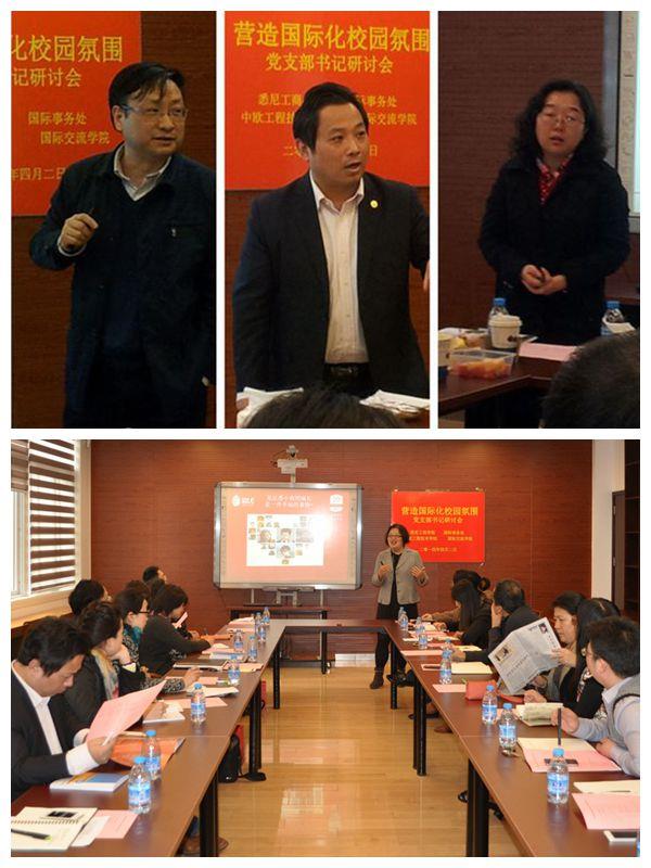 随着高等学校教育教学改革的深入,围绕beat365手机官方网站国际化战略要求,学院党委将“营造国际化校园氛围”列入工作重点。4月2日下午,以“营造国际化校园氛围”为主题的党支部书记研讨会在嘉定校区文德楼国际交流中心召开。会议特邀国际事务处支部书记倪兰副处长、中欧学院院长兼直属党总支书记钱晋武、国交学院总支书记李坚等领导携学院部处相关党务工作者出席会议,我院党委书记李双、副书记滕云、副院长胡笑寒及教工、学生党支部书记共同参加了本次研讨会。