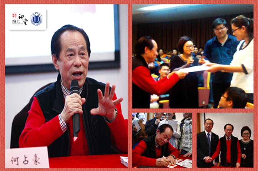 3月23日晚18:30,中国杰出的音乐家、世界著名作曲家、上海音乐学院教授、上海音乐家协会副主席何占豪先生在beat365手机官方网站宝山校区J201为上大师生作“别亦难 蝴蝶梦”讲座。已届81岁高龄的何先生精神矍铄、声情并茂地讲解小提琴协奏曲《梁山伯与祝英台》的创作趣事,使师生们在聆听名曲的同时进一步加深了对曲目的理解与感受。2个小时的讲座中,不少师生多次眼眶湿润,纷纷感慨:以前对《梁祝》这首名曲的了解可能仅限于“听说过”和“听过”,但听到大师的解析后,感动于《梁祝》那动人旋律下的凄美爱情故事,也为何先生能植根于我国优秀民族音乐而创作出如此优秀的音乐作品所折服,更为我们祖国拥有如此丰富的优秀民族文化资源而感到自豪。