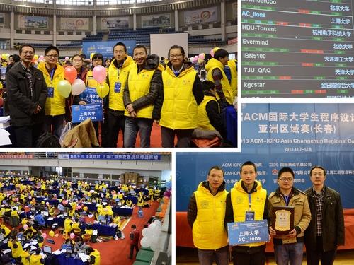第38届ACM/ICPC(国际大学生程序设计竞赛)亚洲赛区长春站的比赛于2013年12月7日至8日在吉林大学举行。来自全国100多所高校的180多支队伍参加了本次比赛。我校ACM集训队派出来自计算机学院和通信学院学生组成的AC_lions与SHU_Cherish 两支队伍参与比赛,其中AC_lions由通信学院的邝斌和计算机学院的李新民、吴旻烨组成;SHU_Cherish队由计算机学院的三位女生朱琳、戴书吉、倪梦君组成的女队。