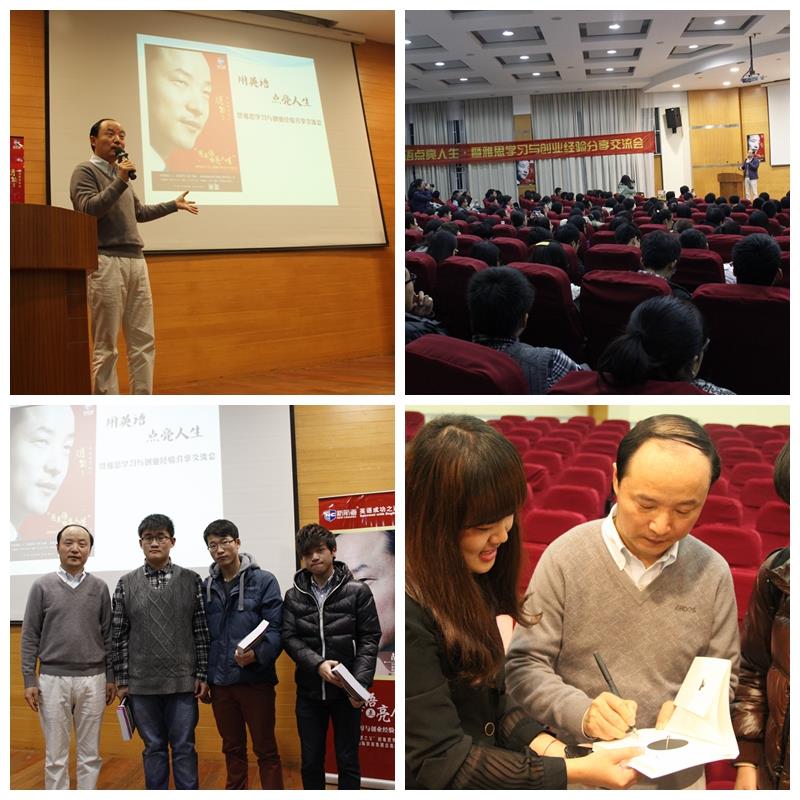 2013年12月5日晚6点半,有着“中国雅思之父”之称的新航道国际教育集团总裁胡敏教授应beat365手机官方网站悉尼工商学院邀请,于嘉定校区图书馆报告厅作题为“用英语点亮人生•暨雅思学习与创业经验分享会”的专题讲座。学院团委书记张明明、学生会秘书长张洁茹及上海新航道学校执行校长张凡林先生、市场总监邓碧云先生和市场运营经理沈重阳先生出席了本次讲座。