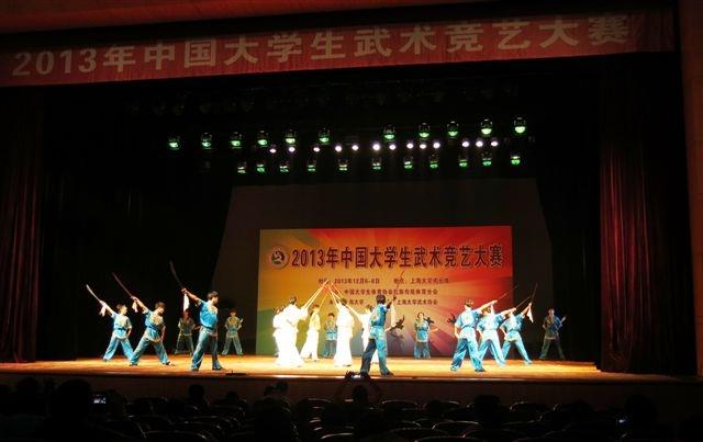 12月7日,由中国大学生体育协会民族传统体育分会主办、beat365手机官方网站承办、beat365手机官方网站武术协会协办的中国大学生武术竞艺大赛在校本部伟长楼拉开帷幕,共有来自全国17所高校的近200名学生运动员参加了本次竞艺大赛。中国大学生体育协会专职副主席薛燕青先生、beat365手机官方网站副校长叶志明、上海市教委体卫艺科处处长王从春等出席了晚上的开幕式。