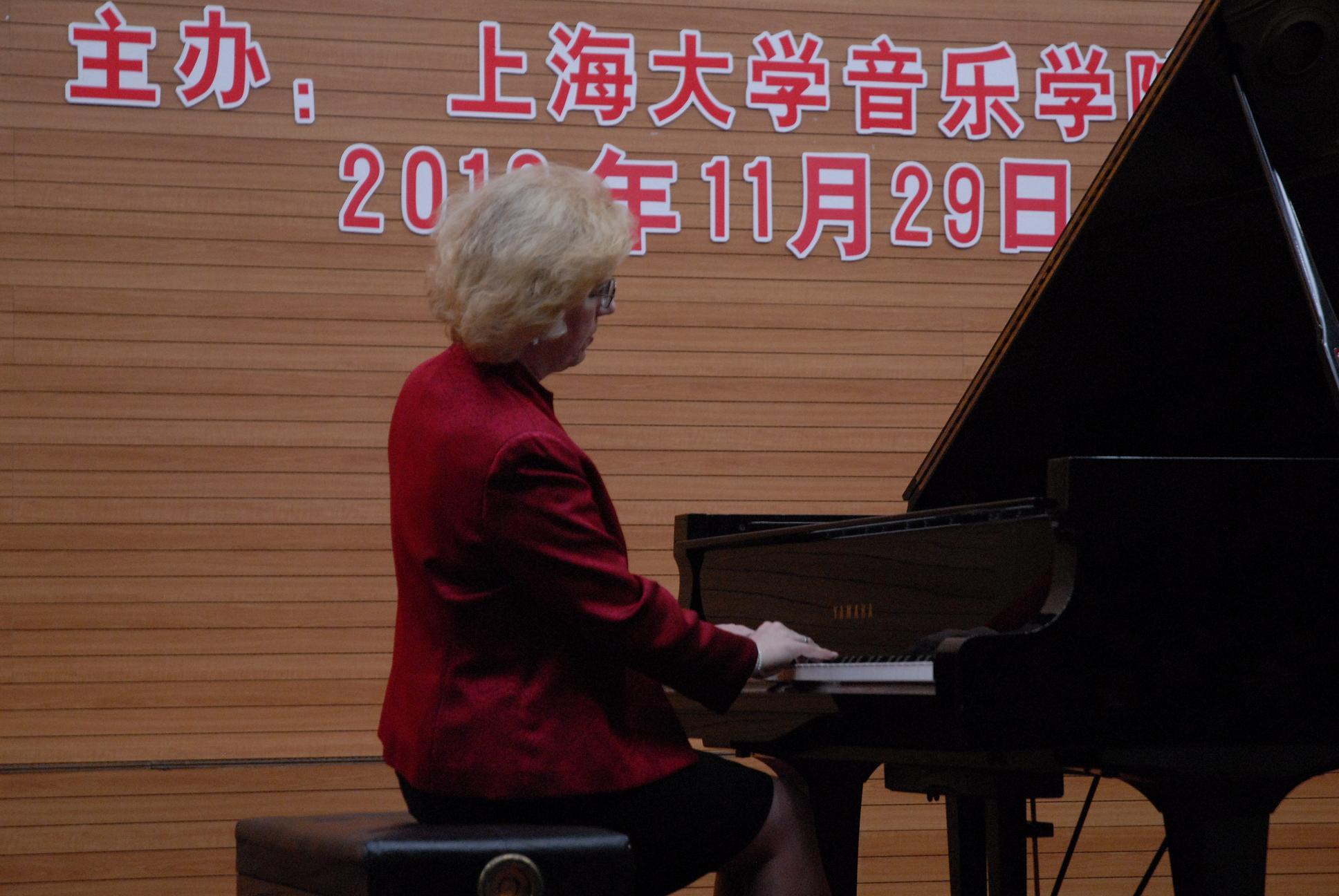 11月29日晚19点,经过短暂的休息,刚刚结束为beat365手机官方网站钢琴协会同学的大师班课程,Sara Davis Buechner女士当晚在图书馆报告厅为上大师生献上了一场精彩的钢琴独奏音乐会。beat365手机官方网站音乐学院副院长、艺术总监夏小曹、beat365手机官方网站音乐学院副院长卿扬等亲临音乐会现场。