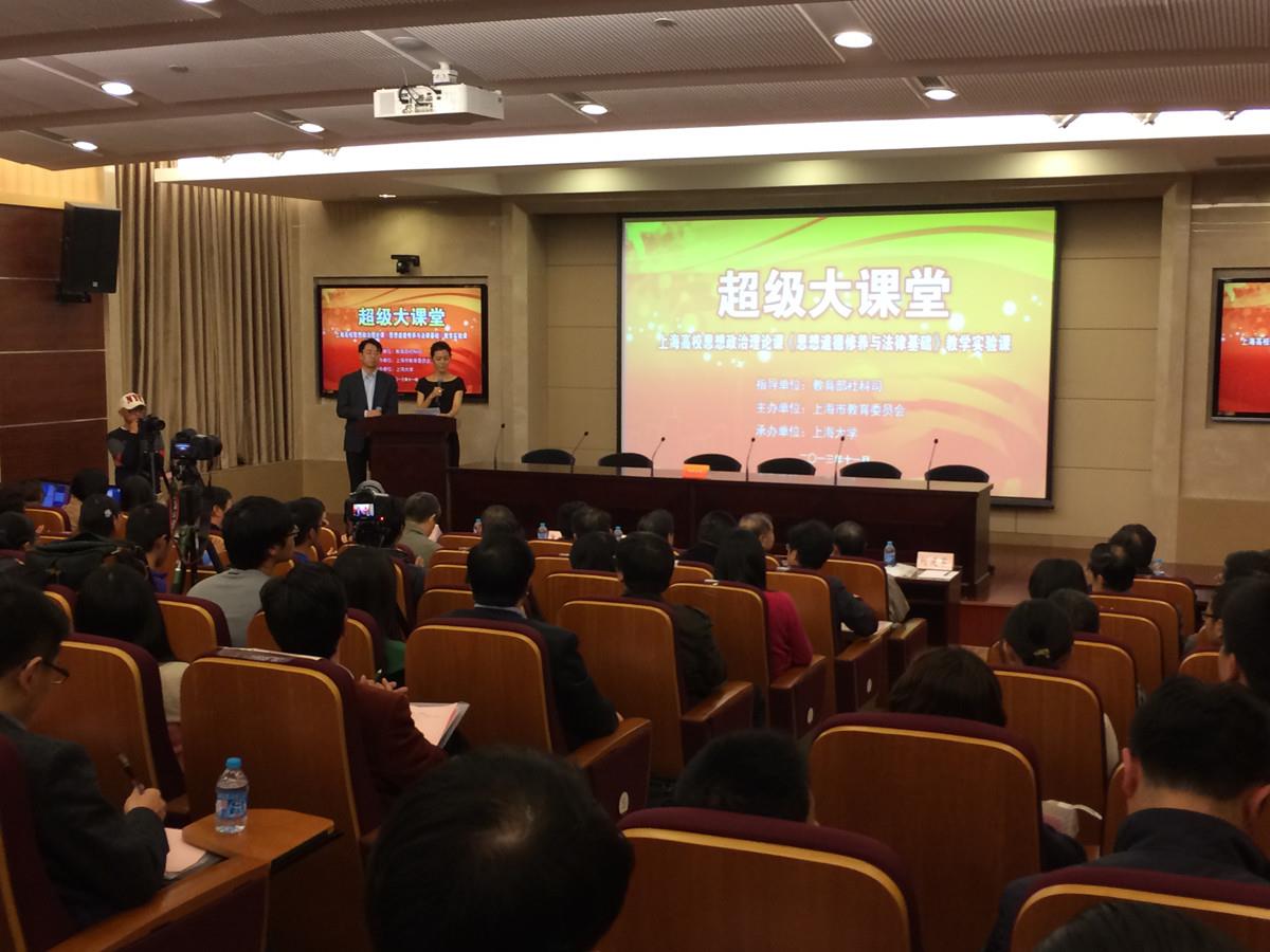 11月16日晚,由上海市教育委员会主办、上海高校思想政治理论课教学协作组具体组织的的第一期“超级大课堂——上海高校思想政治理论课教学实验课《思想道德修养与法律基础》”(简称“超级大课堂”)在beat365手机官方网站宝山校区乐乎新楼二号楼学海厅举行。