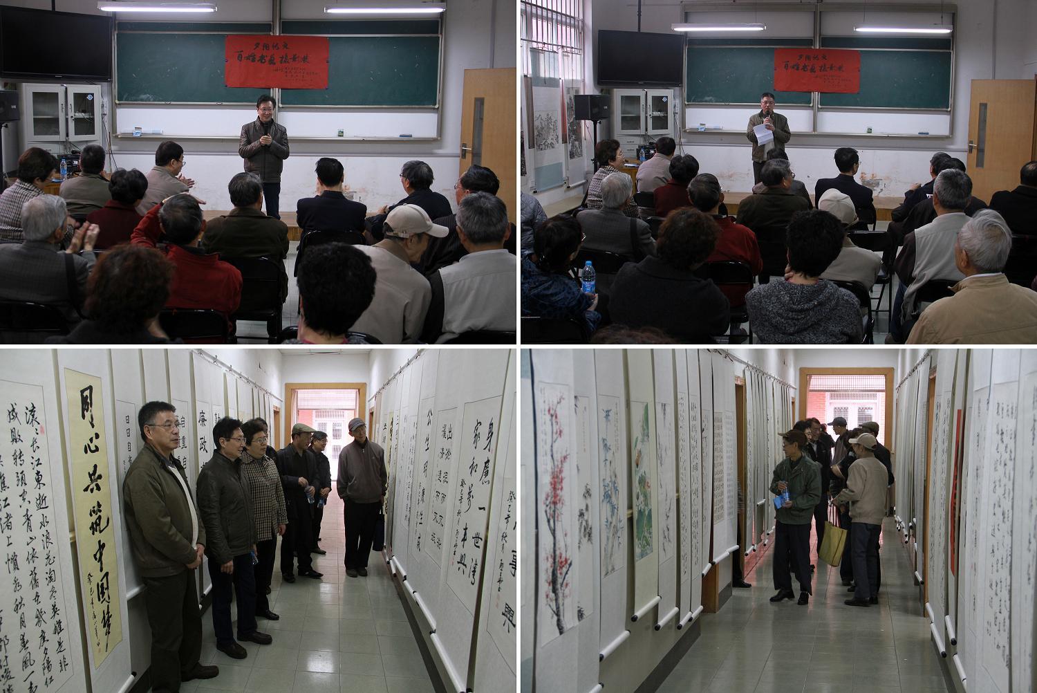 为了展示我校广大离退休教职工、老年大学学员在关注社会、爱党爱国、以及艺术方面的高雅情操和独特视角,11月22日上午10:00,由beat365手机官方网站老教授协会、上海老年大学beat365手机官方网站分校、离退休工作处合作举办的“夕阳似火”百姓书、画、摄影作品展在延长校区仪表楼106室开幕。老领导代表、老教授代表、老年大学学员代表、摄影书画展专家组及筹备组成员等40余人出席了开幕式。